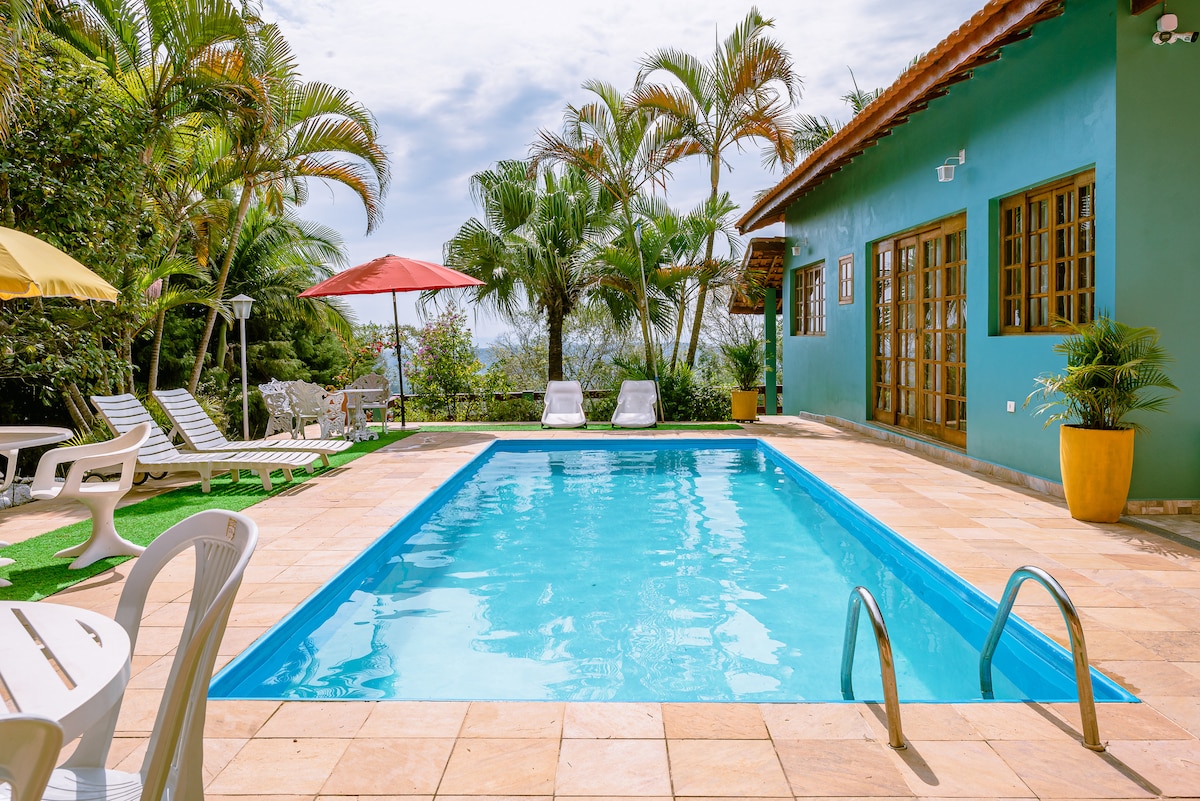 Chácara Roseira se nalazi u Piedadeu, samo 1: 30 minuta od São Paula ima nekoliko sadržaja za naše goste: * 4 spavaće sobe (2 apartmana) - Jedna od soba s prekrasnim pogledom na prirodu * 4 kupatila * Vrlo veliki bazen 15m x 7m ( ima plitki dio i duboki dio) * Kada / masažna kada * Sto za bilijar/stoni tenis * Roštilj * Šporet na drva * Drvena pećnica * Frižider i zamrzivač * Velika soba * TV * Wi-Fi Maksimalni kapacitet: 20 osoba