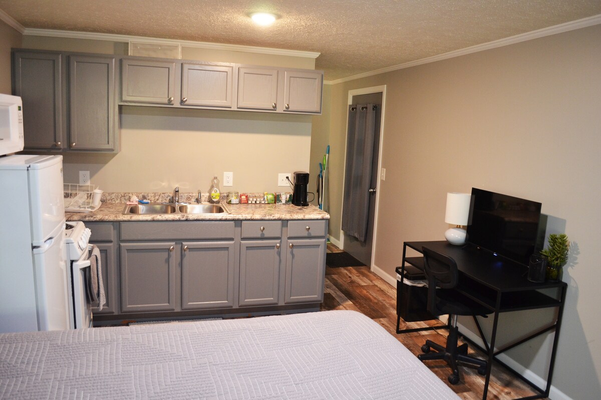 Sve što vam je potrebno za opuštanje i punjenje u jednom udobnom prostoru. Privatni ulaz. Ovaj apartman je otvoreni tlocrt s malom čajnom kuhinjom koja uključuje frižider, mikrovalnu pećnicu i šporet s osnovnim kuhinjskim priborom i posuđem. Nalazi se u gradu u blizini trgovina, restorana. Lijepa terasa iza kuće s natkrivenim prostorom za roštiljanje. Pješačka udaljenost do staze North Country i 10 minuta od nove staze za zmajeve. Postoji jedan bračni krevet i kauč. Udobno će spavati dva gosta.