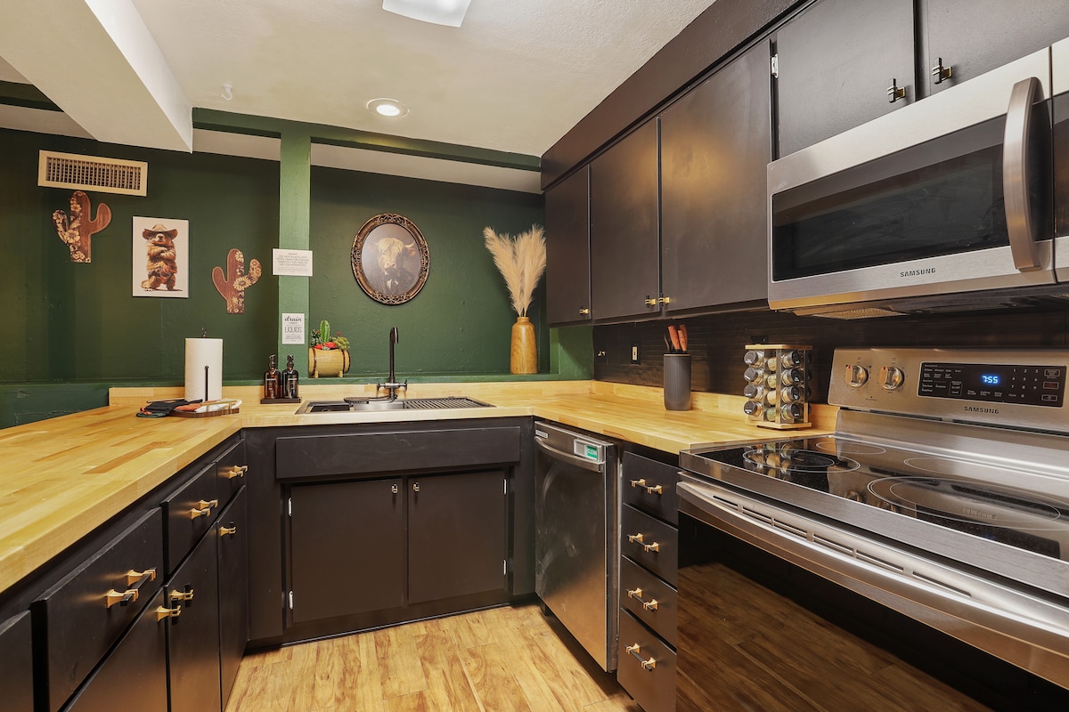 Nenadmašna lokacija, privatnost, stil i pogled!! SAVRŠENO utočište! Profesionalno očišćeno i uređeno za svakog gosta. Uživajte u predivnom pogledu na planine s prostrane terase koja se proteže oko kuće. Opustite se uz brzi Wi-Fi, 50-inčni pametni TV i aplikacije za streaming. Pješačka udaljenost do centra grada i 5 minuta vožnje do Pine Trailheada za odlične mogućnosti planinarenja. Ovaj dobro opremljen smještaj uključuje moderan namještaj, plinski roštilj, prostor za sjedenje s ognjištem i još mnogo toga.