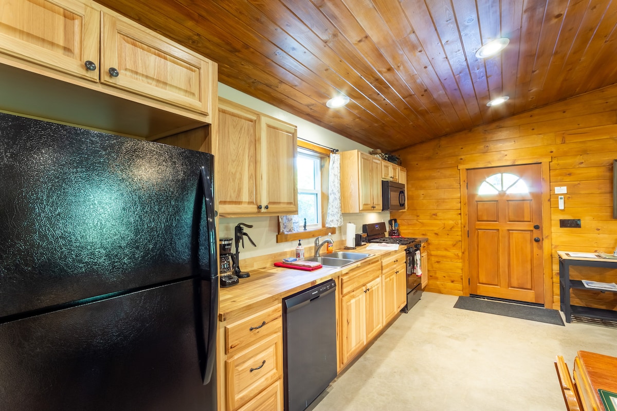 Millwood Cottage nudi udobnost i praktičnost bez žrtvovanja rustičnog osjećaja i privatnog okruženja koje očekujete od seoskog odmora. Ima tople borove panele, zasvođene stropove, veliki TV i prostranu kuhinju sa plinskim štednjakom s 4 ringle i svom potrebnom opremom za kuhanje. Veliki prozori propuštaju prirodno svjetlo i otvaraju pogled na Sierru. Iza je terasa s plinskim roštiljem i ognjištem. Brzi internet vas dobro povezuje sa svijetom.