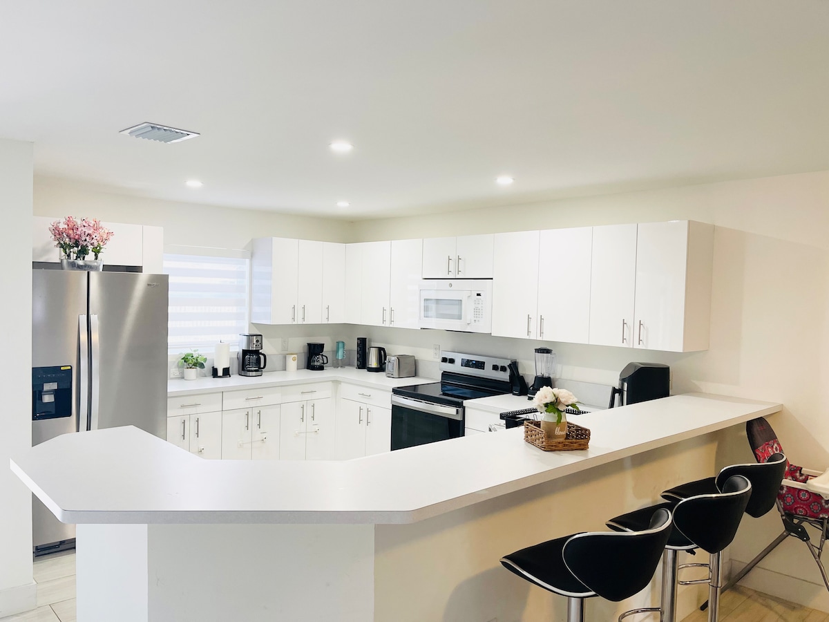 Prekrasna nekretnina u blizini centra Miamija i Miami Beacha. Ovaj stan ima svoje privatno dvorište za uživanje u vanjskoj kuhinji s blagovaonicom i barom, što uključuje: frižider, mikrovalnu pećnicu, ledomat, mašinu za suđe, aparat za kafu Keurig i jednu ploču za kuhanje. Centralni klima uređaj. Mašina za pranje/sušenje veša i dva televizora. Besplatan Wi-Fi/pristup internetu, jedno parkirno mjesto i korištenje zajedničkog bazena. Stan i bazen su profesionalno očišćeni 🧼 Odličan smještaj u Miamiju, u blizini svega!