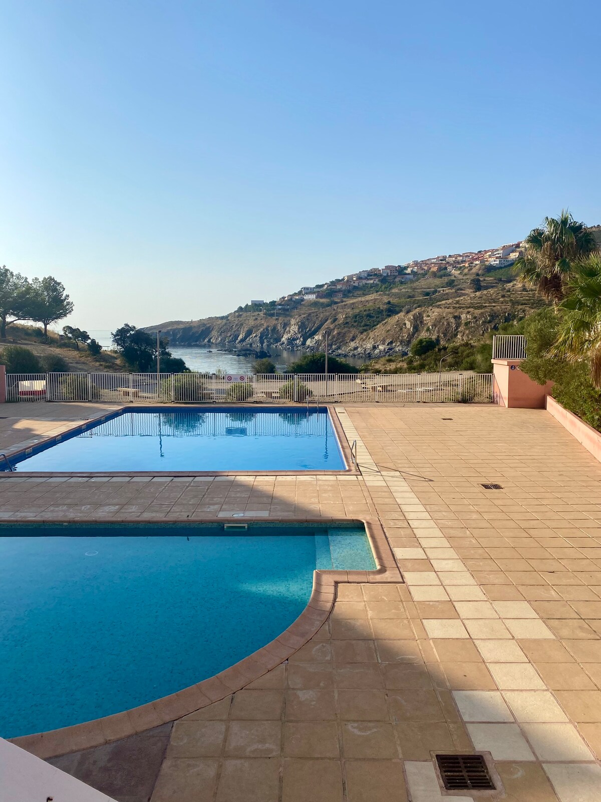 Stan se nalazi u rezidenciji uz more ** *, uključujući siguran parking, bazen (otvoren od aprila do početka septembra) i solarij Panoramski pogled s terase na zaljev Collioure, dvorac, plaže i crkvu je stalni prizor. Centar je udaljen 5 do 10 minuta hoda, uz more .