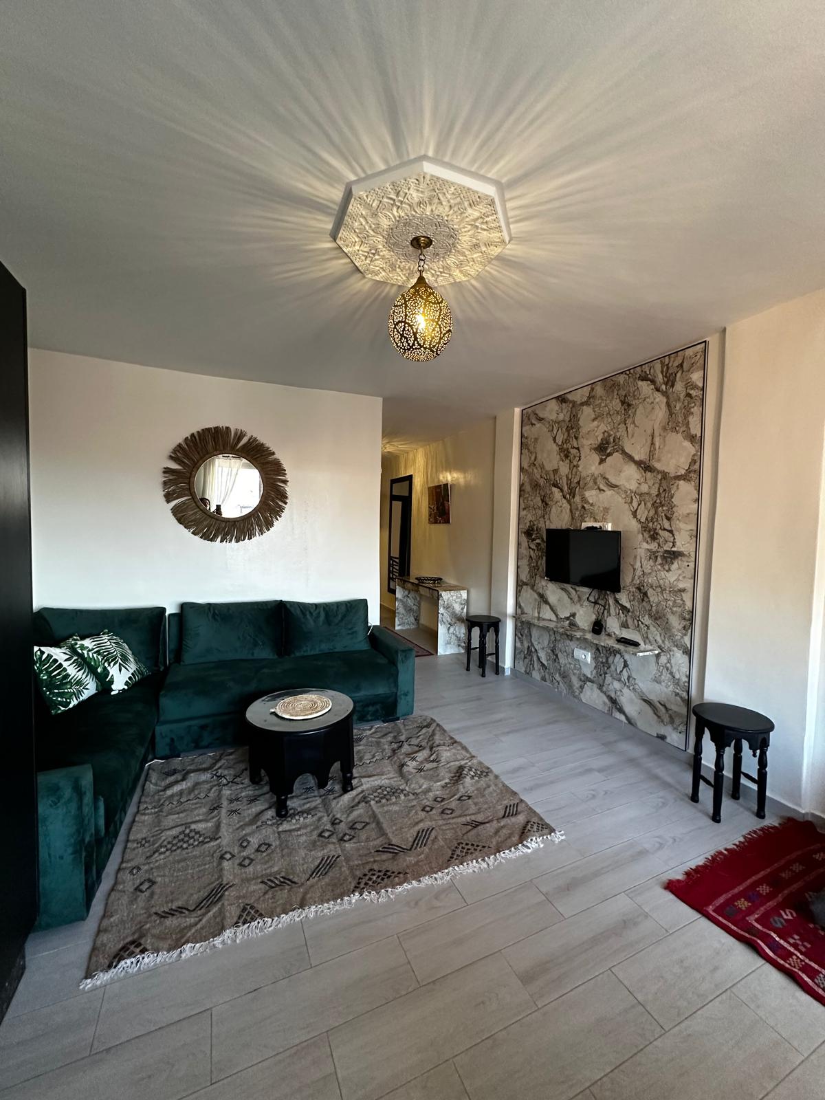 Oubliez vos soucis dans ce logement spacieux et serein. Profitez en famille de bons moments en partage. Avec une vue dégagée sur la vallée de Imi Ouaddar, savourer la rencontre des montagnes d'Arganier et vivez des moments de coucher de soleil sur l'océan Atlantique à partir de votre chambre. Passer de bons moments en piscine, un espace dédié aux enfants, une piste de santé équipée de machines de sport pour pratiquer vos activités sportives. une belle plage à 3 minutes de votre résidence.