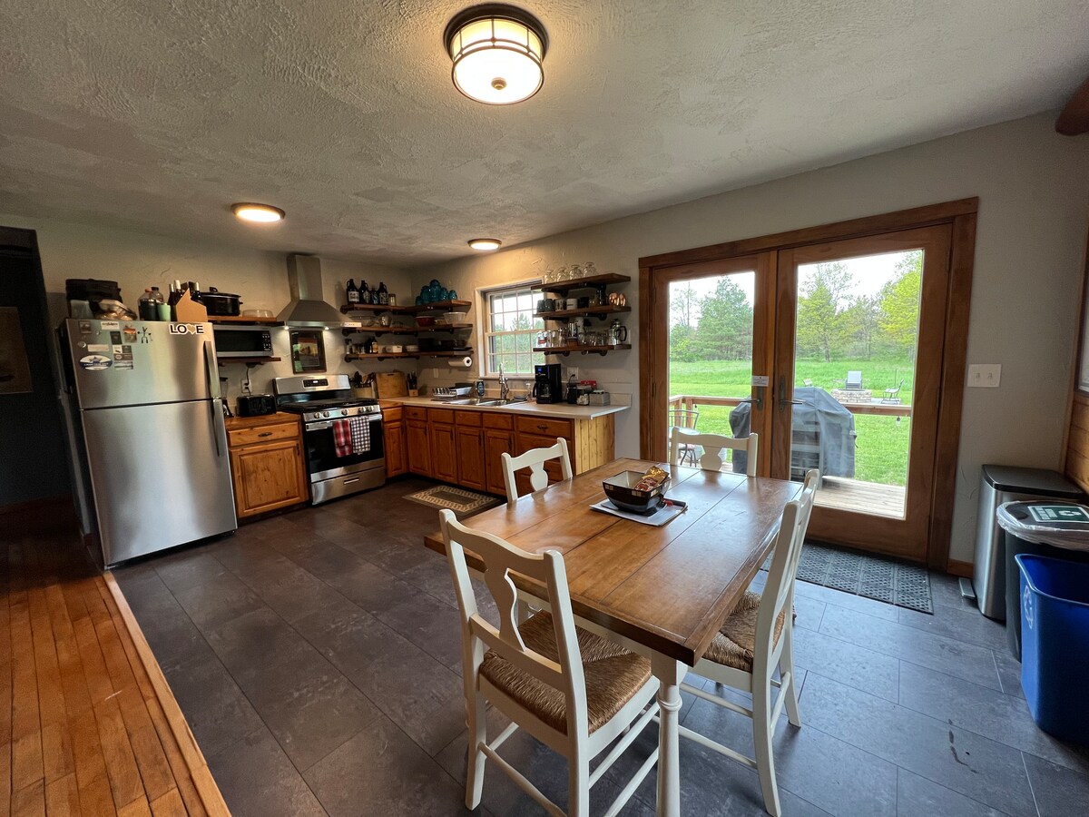 Naš dom je lijepo i mirno utočište. Radi se o velikom dvosobnom stanu nižeg nivoa sa zasebnim ulazom. Postoji 27,5 privatnih hektara za istraživanje s kilometarskom stazom i Stanley Creekom koji prolazi kroz imanje. Ima prilaz dug 1/4 milje, vrlo privatan i udoban prostor. U blizini se nalaze divlje životinje. Ima dovoljno prostora za parkiranje prikolice za čamac s jednostavnim pristupom utičnicama. Na raspolaganju je ognjište s drvetom za spaljivanje.