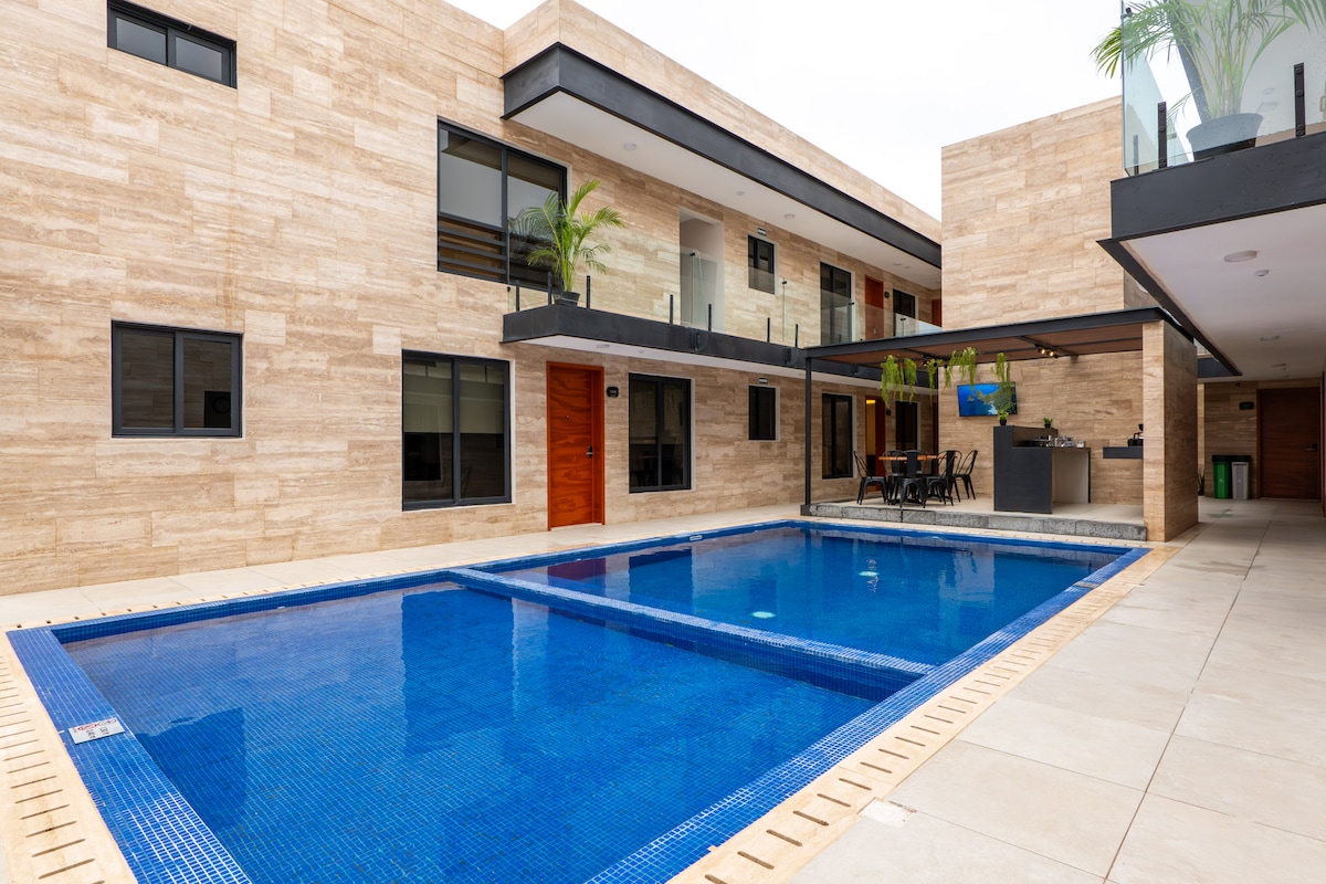 Dobro došli u The Boat House Suites 1 – čist i udoban privatni apartman u srcu centra Cancúna. Uživajte u udobnom bračnom krevetu, privatnom kupatilu, klima-uređaju, Wi-Fi mreži i samostalnom dolasku. Savršeno za putnike koji putuju sami ili parove, s mini frižiderom, mikrovalnom pećnicom, električnim kuhalom za vodu, radnim stolom i ormarom za dodatnu udobnost. Nalazi se nekoliko koraka od lokalnih restorana, prodavnica i javnog prevoza. Opustite se, napunite baterije i istražujte s lakoćom s ove mirne, centralne lokacije. Svi gosti moraju predočiti fotografiju službenog ID-a.