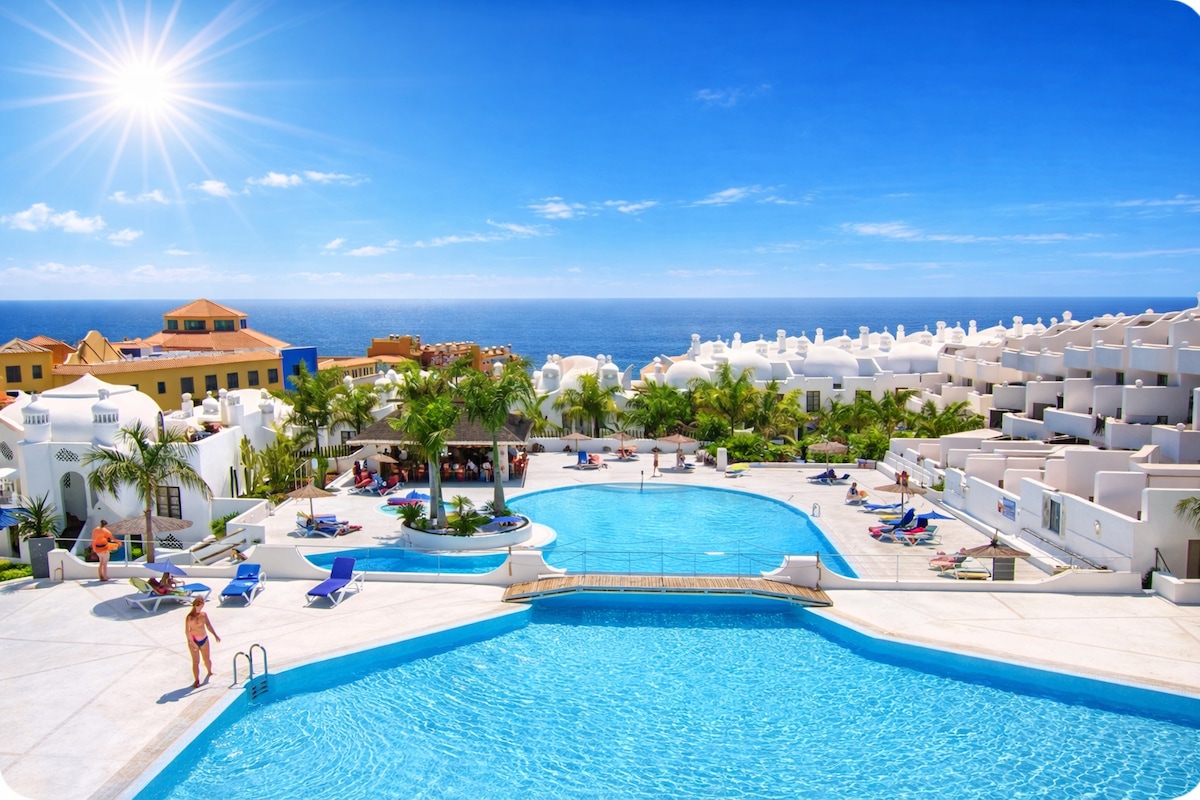 Prekrasan studio u Playa Paraísu s nevjerovatnim pogledom na more prema ostrvu La Gomera. Potpuno opremljen i obnovljen. Bazen i pristup plaži. Mnogo barova, restorana i supermarketa. Novi Hard Rock Hotel je odmah ispred. PAŽNJA: Od 16. juna 2025. do kraja godine bazen će biti ZATVOREN zbog radova na renoviranju.