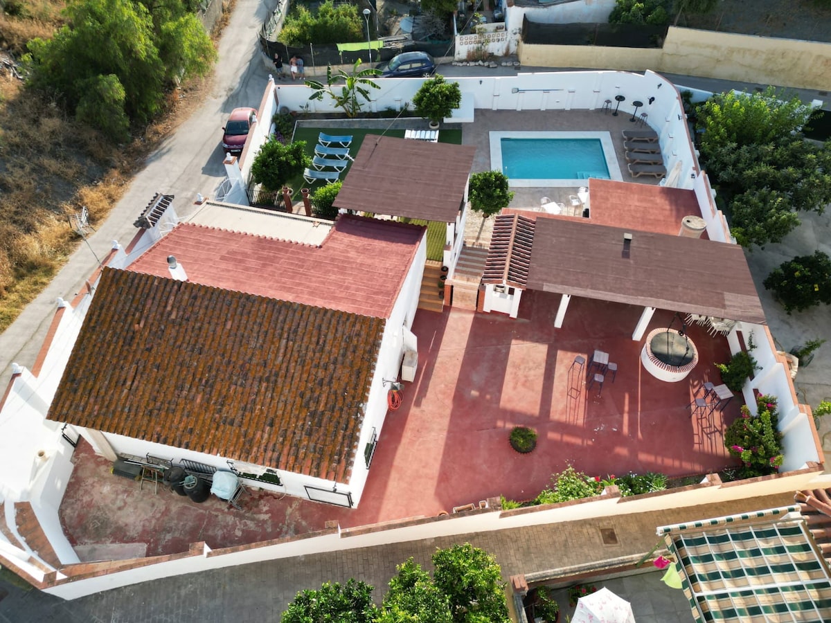 Gezellig familiehuis voor 2 gezinnen of 1 grote familie (8 personen + 2 babybedjes) met privé infinity pool (9x4m), verwarmd vanaf april t.e.m. oktober door middel van zonnepanelen. Prachtig uitzicht op de vallei van Vélez-Málaga en de Middellandse zee. Ideaal vakantiehuis voor wie houdt van een unieke locatie, zeezicht, natuur, prachtige zonsondergangen en sterrenhemels, en bovenal rust.