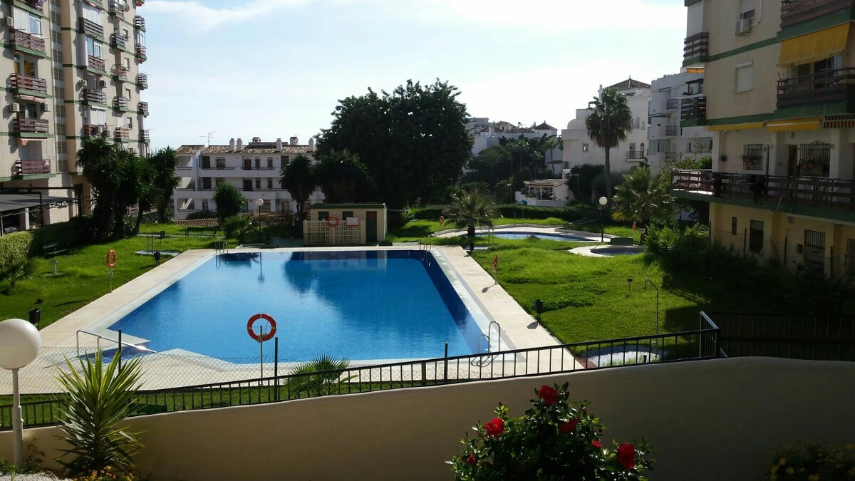 Prekrasan stan na prvoj liniji plaže u Benalmadeni Costa. Terasa s prekrasnim pogledom na okean i plažu. Ima veliku dnevnu sobu s trpezarijom, opremljenu kuhinju, jednu spavaću sobu i jedno kupatilo. Kompleks nudi prekrasne zajedničke prostorije s vrtovima, bazenom, prostorom za piknik i direktnim šetalištem i pristupom plaži. Wi-Fi, hladan klima uređaj u spavaćoj sobi. Fantastična lokacija 10 minuta od Puerto Marine. Prvo bez lifta. Privatni parking.