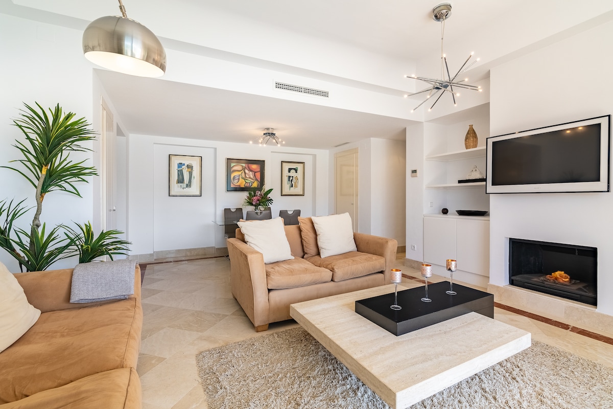 Tourist Reg number: ESFCTU0000110120006657340000000000000000VFT/CA/067715. The apartment is located in Sotogrande Marina, just steps from the beach. It is a spacious three-bedroom apartment, (one bedroom with twin beds), three large double sink bathrooms. and has private pool and a garden. The apartment is fully furnished and includes bed linen and towels, free WIFI, (Netflex, etc.) and private indoor parking. It has open living room/dining area design with a television and fireplace.