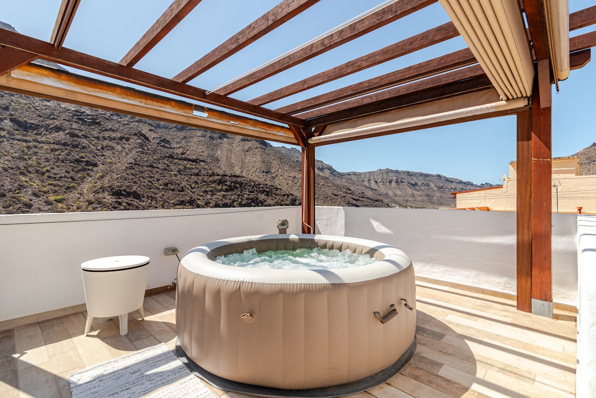 U ovoj kući dišete mir i prirodu: opustite se i uživajte sa svojim partnerom, prijateljima ili cijelom porodicom. Uživajte na suncu s pogledom na spektakularne planine Tamadaba i prekrasnu dolinu Valle de Agaete. Postavite roštilj kad padne mrak, opustite se uz opuštenu atmosferu u unutrašnjem dvorištu i živite u smještaju stvorenom za udobnost i uživanje.