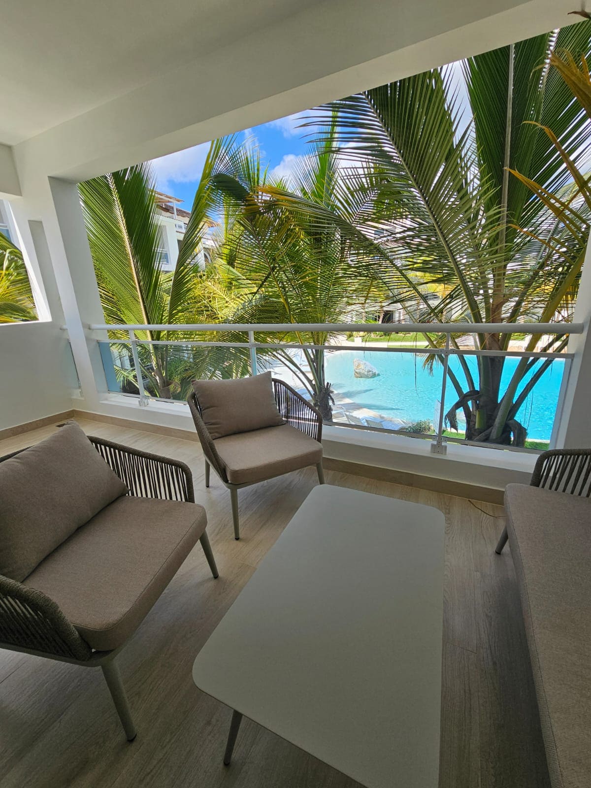 Dobro došli u naš veličanstveni stan od 120 m 2 u Dominicusu, Dom. Rep. gdje se susreću opuštanje i luksuz. Naš prostrani dnevni boravak s otvorenom kuhinjom poziva vas da se zadržite i uživate. S pogledom na bazene i bujni vrt, balkon nudi prekrasan pogled koji oživljava vaša čula i pruža vam nezaboravne trenutke mira. Doživite čaroliju Kariba u našem ugodnom utočištu koje kombinuje udobnost i eleganciju u savršenoj harmoniji.