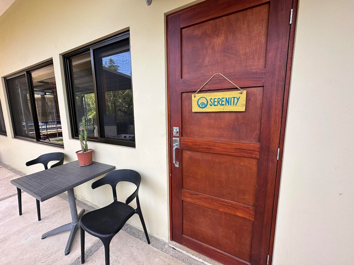 Our Serenity studio has a queen size bed, individual sized sofa bed, a stocked kitchen, a bathroom & private patio, making it a lovely option for an individual, a couple or a parent(s) with a child. The unit has internet TV and good wifi. The space has a lockable connecting door to the Balance Studio that can be used if you’re traveling as a larger family, but you also have plenty of privacy during your stay.