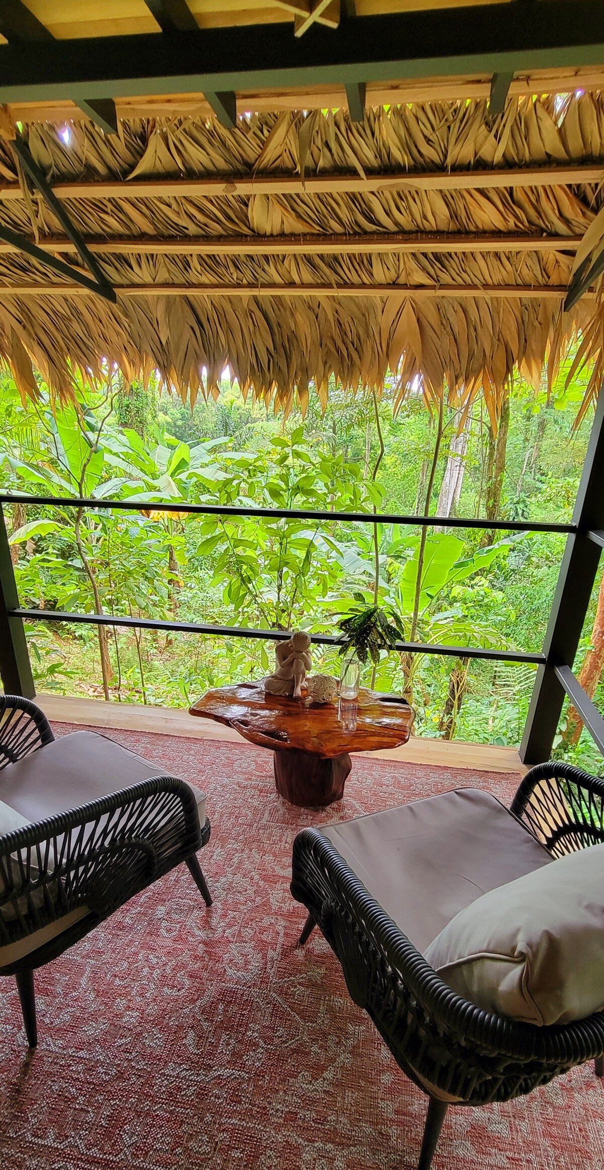 Relájate en esta escapada única y tranquila en medio de la selva caribeña y a solo 5 minutos en coche de la playa de Cocles. Ofrecemos un bungalow independiente desde donde pueden relajarse con una vista impresionante de la selva y su fauna. Tendrán posibilidad de avistar tucanes, grandes lapas verdes, oropendolas, perezosos etc. IMPORTANTE: Lea otros aspectos a destacar.
