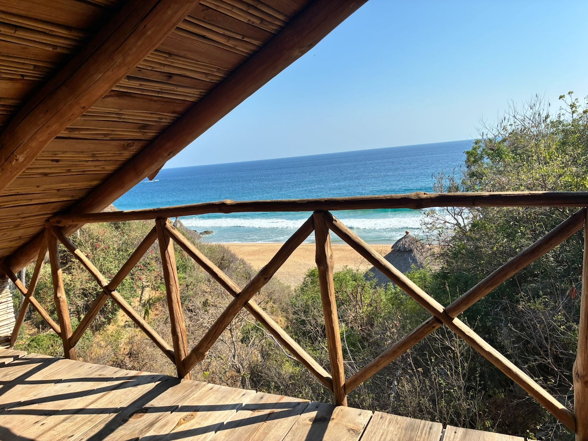 Idealno za radnike na daljinu. Starlink i svjetlovodni internet. 1 m hoda do plaže, eko-bungalow s potpuno opremljenom kuhinjom, kupatilom, mezaninom za meditaciju. Potpuno filtrirana, pročišćena voda za piće, sigurna. Bez dima. Organska tržnica u Mazunteu. Prošećite plažom, iznajmite moped, ronite na malim plažama. 6 minuta hoda do Hridaye. Imate mali ugljični otisak u našem objektu. Ekološki i održivo, recikliramo. Bez kućnih ljubimaca, bez klima uređaja. **Mjesečni najam**