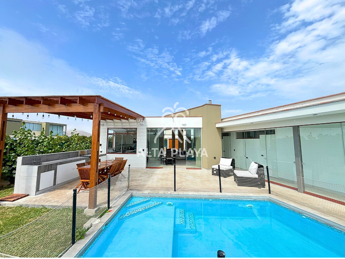 Osjećat ćete se kao na krstarenju samo za vas! Sve prostorije su namijenjene isključivo gostima (bez dijeljenja s drugima) 3 sobe, kuhinja, trpezarija, odlazak, terasa, Wi-Fi, kablovska, vrt, bazen, parking za 2 automobila 40 metara do plaže Najbolje mjesto za surfanje Caballeros, Señoritas (direktan pogled) ili samo opuštanje uz pogled na more Porodice i grupa prijatelja su dobrodošli. Kuća ima dovoljno prostora za zabavu, slušanje muzike i uživanje u jednom od najboljih pogleda u Limi uz potpunu privatnost