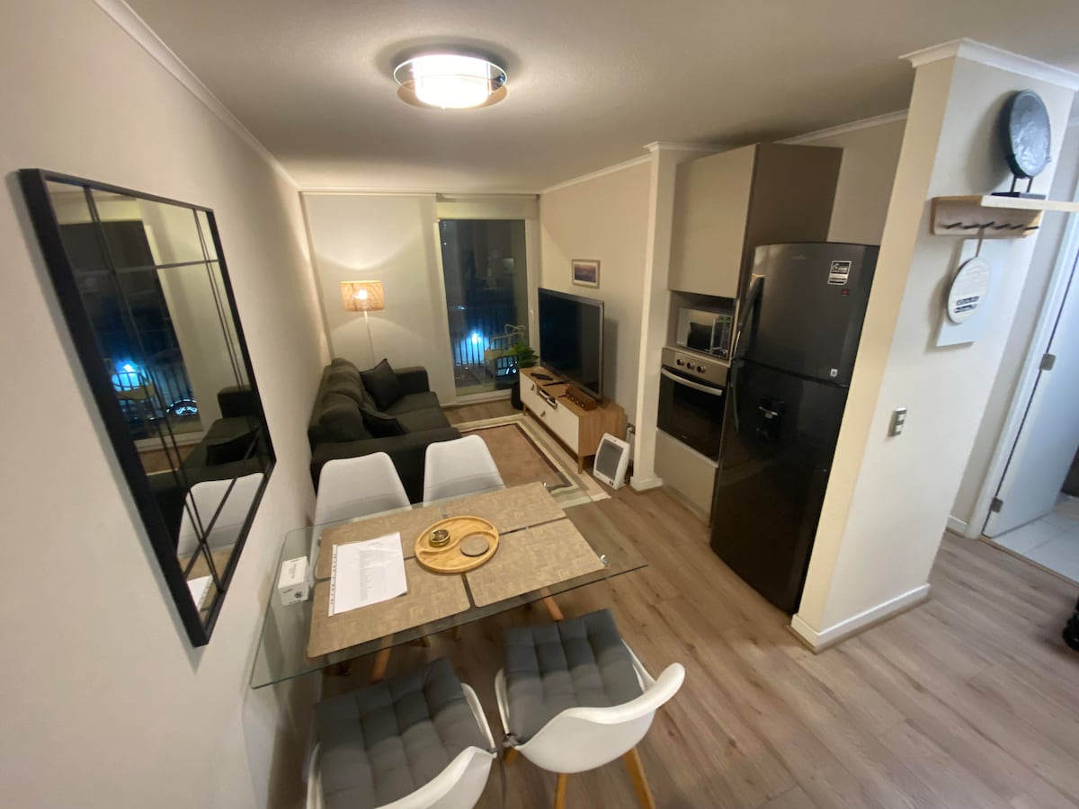 Prekrasan ekološki stan ( 100%električni, bez plina ) s dva okruženja. Spavaća soba, balkon,čajna kuhinja i dnevna soba potpuno namještena i opremljena. Nalazi se u četvrti Santa Lucia u historijskom centru Santiaga (Nacionalna biblioteka, Muzej likovnih umjetnosti, Cerro Santa Lucia, Vladina palata itd.), koraci od stanice metroa (Santa Lucia ) u blizini supermarketa, restorana i javnog parkinga. Savršena lokacija za upoznavanje Santiaga i kupovinu