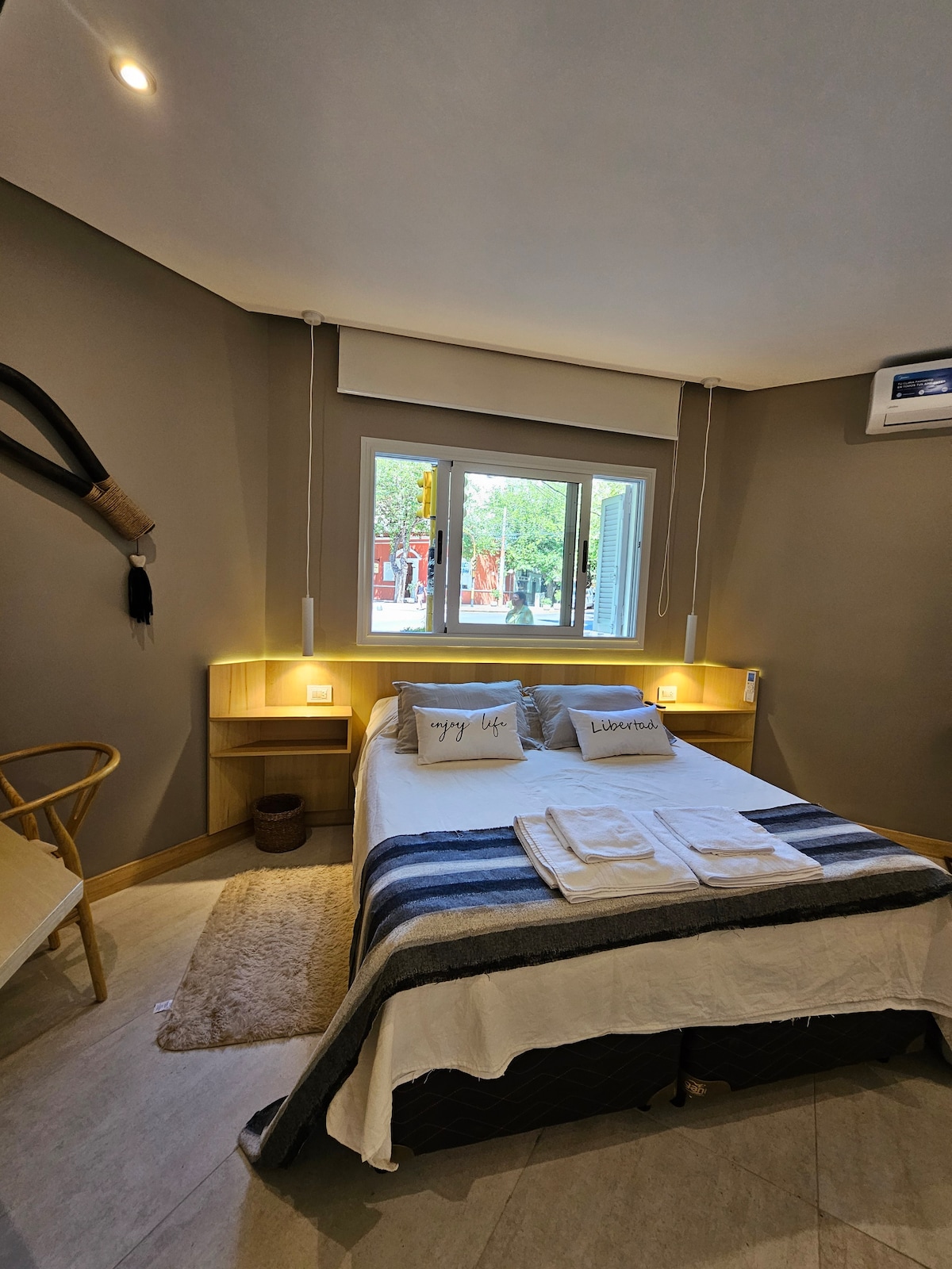 Opustite se u ovom božanstvenom potpuno novom prostoru, renoviranom sa stilom, kvalitetom i dizajnom. Optimalna lokacija u mirnoj stambenoj četvrti okruženoj tržnicama i vegetacijom. Ističemo njegovu blizinu našeg velikog parka San Martin, idealnog za vježbanje i poznatu gastronomsku aveniju. Vrhunski Simmons potpuno novi kraljevski krevet s oprugama za ugodan odmor. Na drugom spratu s balkonom. Sve sobe imaju prozore Dostupni bicikli Samostalni dolazak s jedinstvenim kodom 2 Klimatizovano s toplim hladnim podijeljenim zrakom