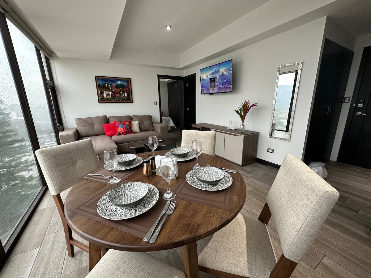 Uživajte u ovom šarmantnom malom studio apartmanu s klima-uređajem i prekrasnim pogledom na vulkan Agua s balkona. Strateški se nalazi u srcu komercijalne i poslovne četvrti Gvatemale, samo 15 minuta od aerodroma. Ovaj stan vam nudi jedinstven doživljaj, okružen raznovrsnim restoranima, barovima i tržnim centrima kako biste mogli u potpunosti uživati u svom boravku.