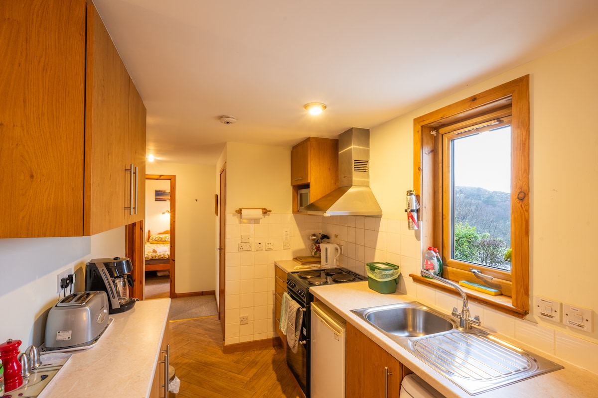 Prelijepa lokacija uz jezero s vrtom i pogledom na kamenu plažu. Na zapanjujućoj lokaciji okruženoj planinama, jezerima i šumama. Odličan je za parove i porodice s djecom. Savršeno za šetače i turiste. Idealno mjesto za opuštanje i odmor. Ovaj objekat se nalazi pored „The Saddle” koji je jednosobni objekat za 2 osobe ako vam je potreban dodatni smještaj. Ovo je savršeno mjesto za istraživanje Highlandsa i ostrva Skye.
