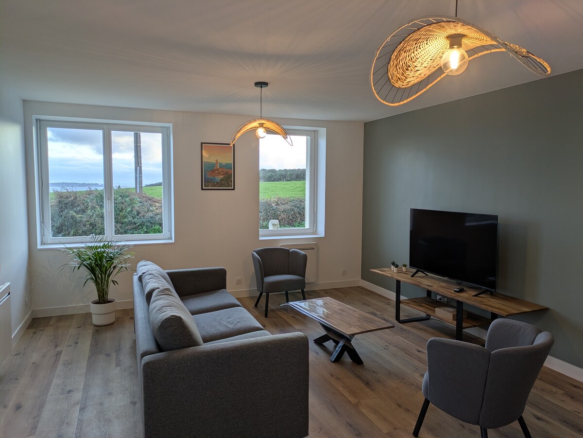 Logement élégant et confortable dans le quartier calme du Dellec avec une très jolie vue sur la campagne. Idéalement situé : - à pied à 700 m. (15 min. de marche) du Goulet (2 petites plages très sympas) et du magnifique sentier GR34, à 15 min. du centre de la Trinité Plouzané, à 700 m. d'un arrêt du bus pour le centre (Ligne 2) - en voiture : à 20 min. du centre et de la gare de Brest, à 2 min. du Technopôle/Ifremer, à 5 min. du phare du Minou et à 20 min. du Conquet et des Blancs Sablons.