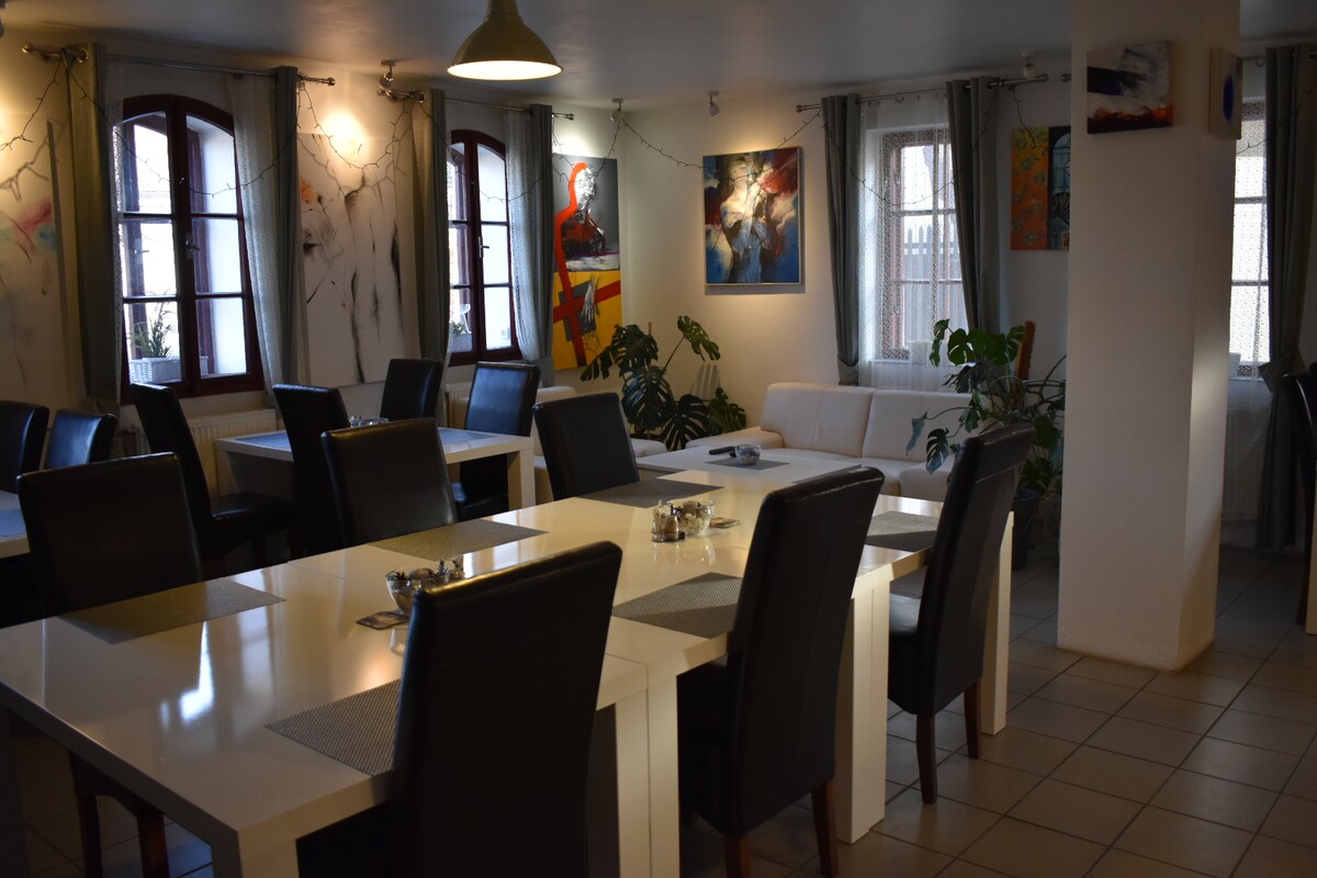 Naš mali stan na rijeci Mühlenhof Vodolenka idealan je za parove ili male porodice s bebama. Mirna i blizu prirode, nudi dobro opremljenu kuhinju, namještaj pun ljubavi, pristup vrtu i mali wellness prostor sa saunom i jacuzzijem. Crveni jelen ispred prozora, domaće životinje, prostor za roštilj i ribnjak pružaju seosku idilu. Dostupan je dječji krevetić, uključujući bicikle za iznajmljivanje. Savršeno za opuštanje i čistu prirodu.
