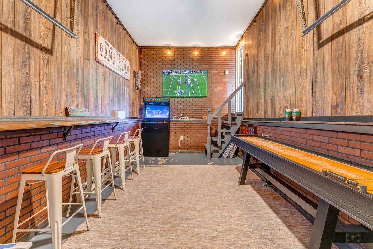 Pobjegnite u ugodan jesenji odmor u blizini Kalaharija, kasina Mount Airy, trgovačkih centara Crossings, jezera Wallenpaupack i državnog parka Tobyhanna udaljenog 3 km s jesenjim lišćem i planinskim zrakom, pogledom na jezero, divljim životinjama i mjestima za piknik. Smještena uz krševitu privatnu cestu. Ovaj smještaj u stilu spa centra ima duboku kadu, tuš s efektom kiše, pametna svjetla, kuhinju s pametnim štednjakom, udobne krevete, LED ogledala s muzičkom sinhronizacijom i retro arkadnu zabavu. Savršeno za parove, rođendanske izlete ili porodice koje traže miran boravak u Poconosu s modernim sadržajima.