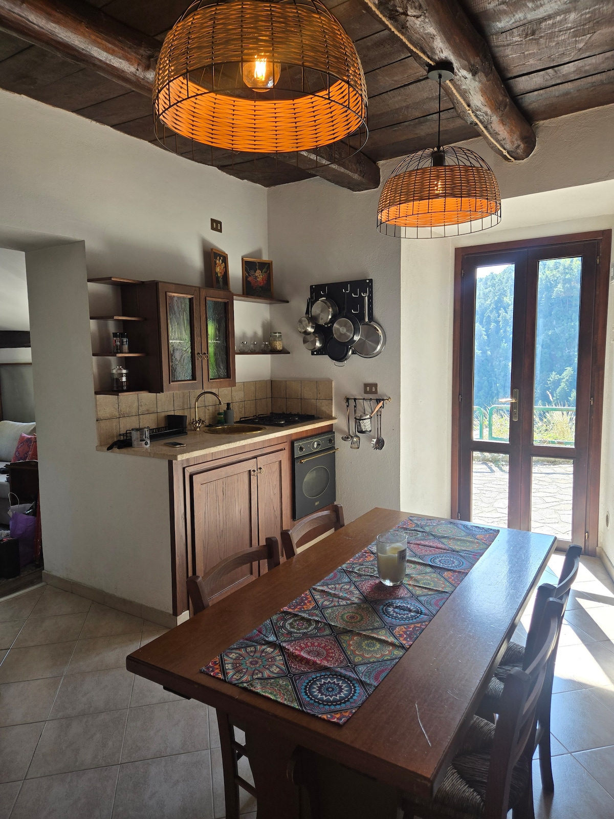 Seoska kućica izgrađena od kamena i drveta izgrađene na dva sprata, s velikim dnevnim boravkom, staklenim prozorom, kaučem za dvije osobe i kupatilom sa saunom; na drugom spratu se nalazi spavaća soba s bračnim krevetom. Na otvorenom se nalazi veliki vrt s trijemom opremljenim roštiljem i drvenim stolom. Lokacija se nalazi na ugodnim brdima između Bellegre i Olevano Romana. Trenutno smo dodali dva kreveta, postavljena u prekrasnom indijskom teepeu dostupnom za dva dodatna gosta pored četiri.