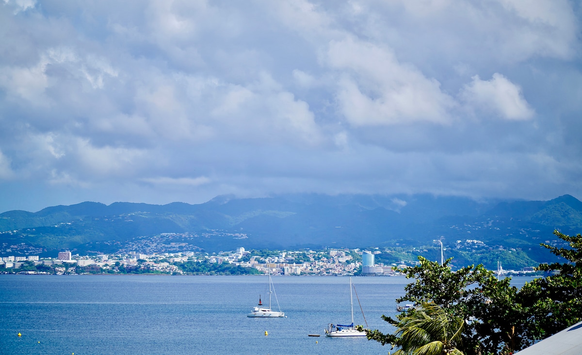 U Trois-Îlets, Anse Mitan, uživajte u odmoru s nogama u vodi (25 m od plaže) s vrhunskim pogledom na more. Veliki svijetli stan: 2 klimatizovane spavaće sobe s garderobom, ugodnom lođom, udobnim dnevnim boravkom i izuzetno opremljenom kuhinjom. Sve je planirano: joga, rad na daljinu, dječji krevetić na zahtjev, skladište. Pješačka udaljenost: barovi, restorani, kazino i prevoz brodom do Fort-de-Francea. Savršeno mjesto za uživanje na Martiniku!