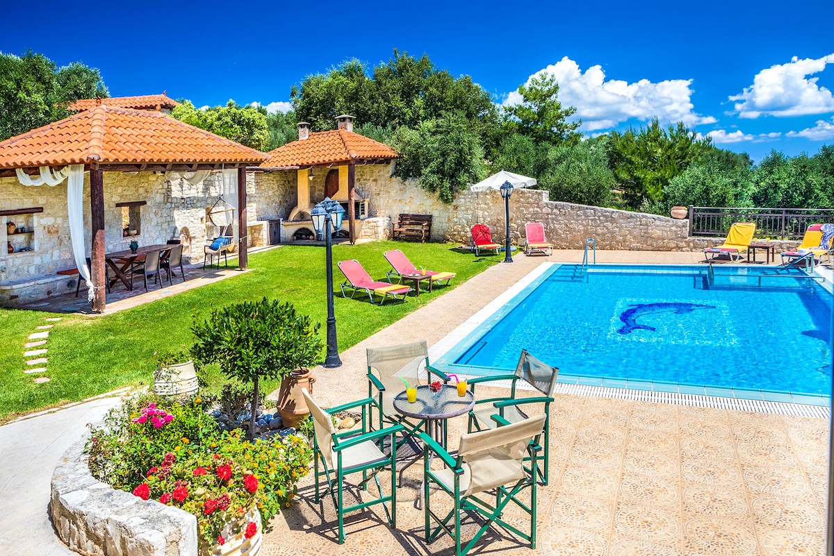 ✩ Uživajte u „zvuku” tišine ✩ Oduševite prekrasan pogled na more i bijele planine Prostor za odmor uz✩ bazen s pogledom na planine ✩ Terasa s pogledom na more ✩ Ograđeni travnati vrt ✩ Opuštajuća baza idealna za istraživanje zapadnog dijela Krete ✩ Pješačka udaljenost do restorana i apoteke ✩ Privatni grijani bazen (na zahtjev uz dodatnu naknadu: 25 € / dan)