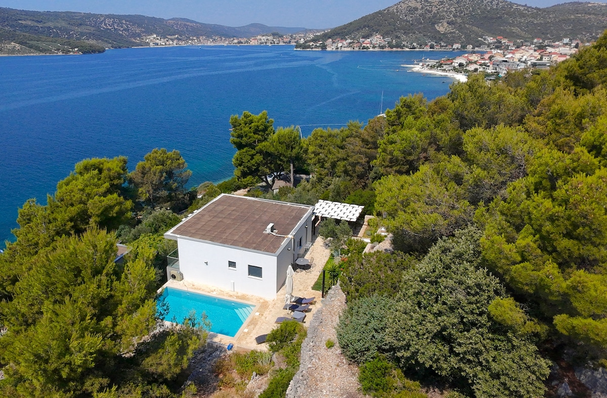 Lokacija vile Belvedere je savršena polazna tačka za Dalmaciju. Odlično se nalazi uz more u prekrasnom zalivu s prekrasnim šljunčanim plažama, samo 5 km od Unesco grada Trogira i 30 km od Unesco grada Splita. Naša vila, mali raj na slikovitoj dalmatinskoj obali, izvrsna je rezidencija za odmor za ljubitelje mira, prirode, svježeg zraka, čistih plaža i blizine turističkih atrakcija, najljepših dalmatinskih gradova, plaža i nacionalnih parkova.