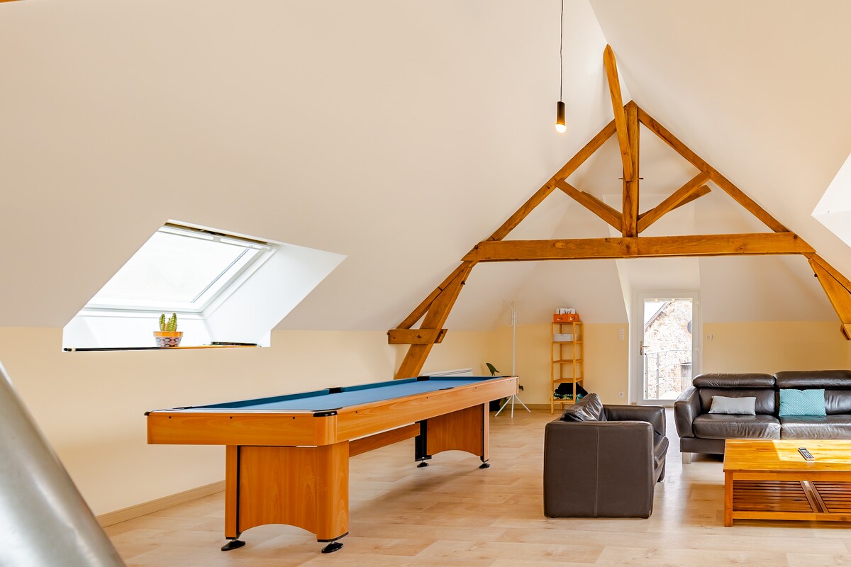 Dobro došli u Château-Gontier! Dođite i odmorite se na ovom mirnom mjestu na 1. spratu renovirane gospodarske zgrade u blizini naše kuće . Odlično za poslovno putovanje, obuku, vjenčanje... Naše dvorište može smjestiti vaše bicikle (blizu smo Vélo Francette) . Ova nekretnina se nalazi u blizini crkve Saint-Rémi, Parc de l 'Oisillière i staze za vuču: možete se lijepo prošetati! Pekara na 200 m. Rado ću odgovoriti na sva pitanja!