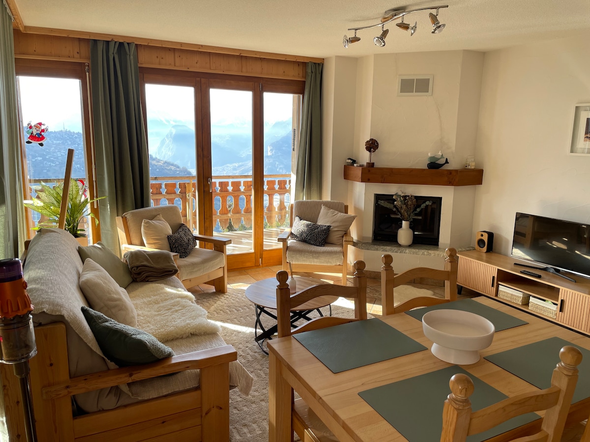 U švicarskim Alpama, 30 minuta od glavnih skijališta, pronaći ćete stan s 2,5 sobe u našoj porodičnoj vili. Prekrasan pogled na planine/Matterhorn i selo, u blizini vinograda. Mirno. Uživajte u besplatnom jacuzziju s naše strane porodičnog vrta. Privatni stan se sastoji od 1 odvojene spavaće sobe, dnevne sobe, otvorene kuhinje s prozorom na terasi (za ekskluzivnu upotrebu za vas), kauča na razvlačenje. TV, Wi-Fi. WC tuš, kolona za pranje veša.