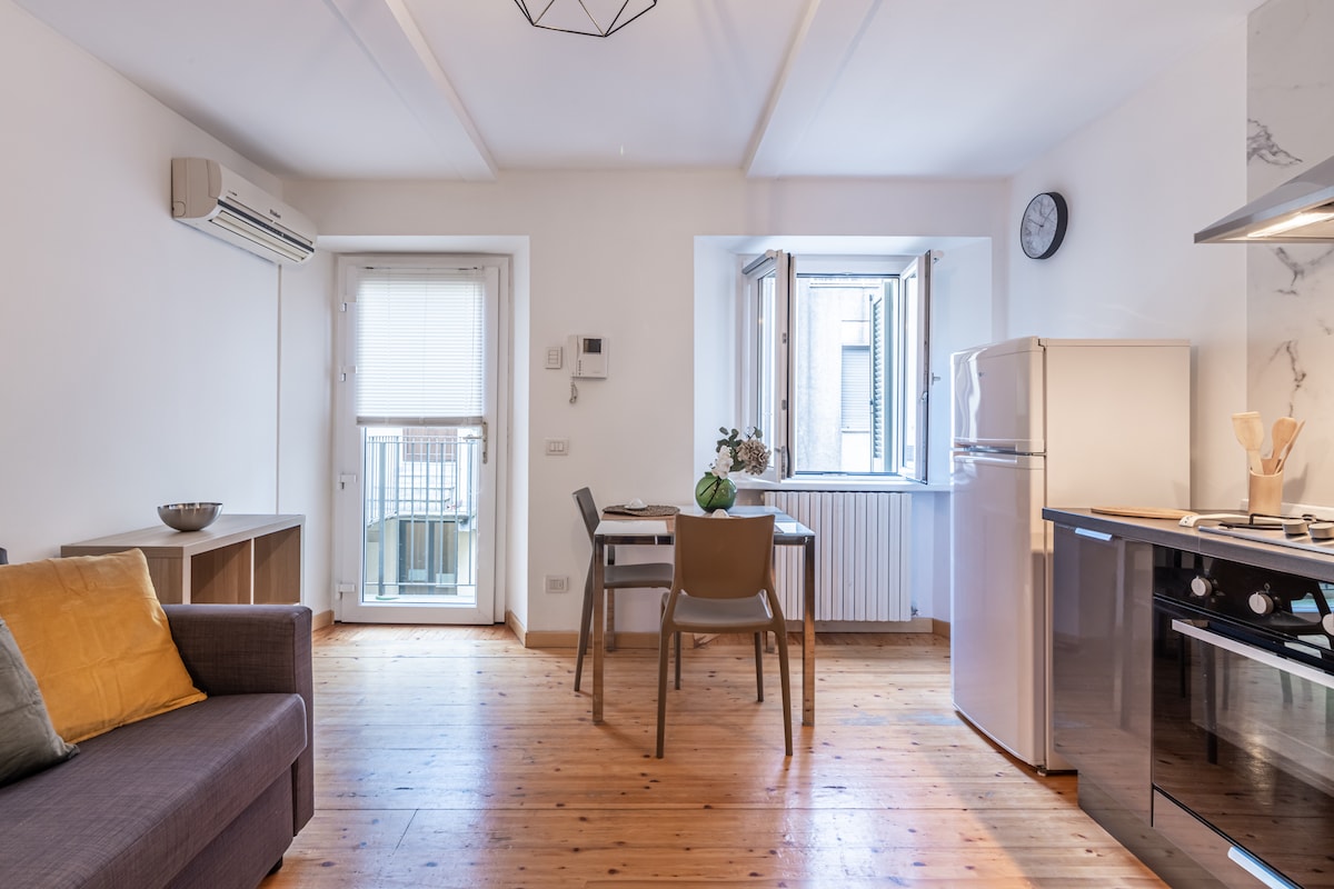 Stan se nalazi u historijskoj kući s ogradom, u srcu slikovitog naselja Pescarenico, nedaleko od jezera i biciklističke staze. U blizini centra grada i svih glavnih sadržaja, objekat ima privatni parking u dvorištu kondominija. Za nekoliko minuta pješice ili autobusom možete doći do centra grada i stanice. Stan ima privatni ulaz i karakterističan balkon na kojem možete uživati u opuštajućim trenucima.