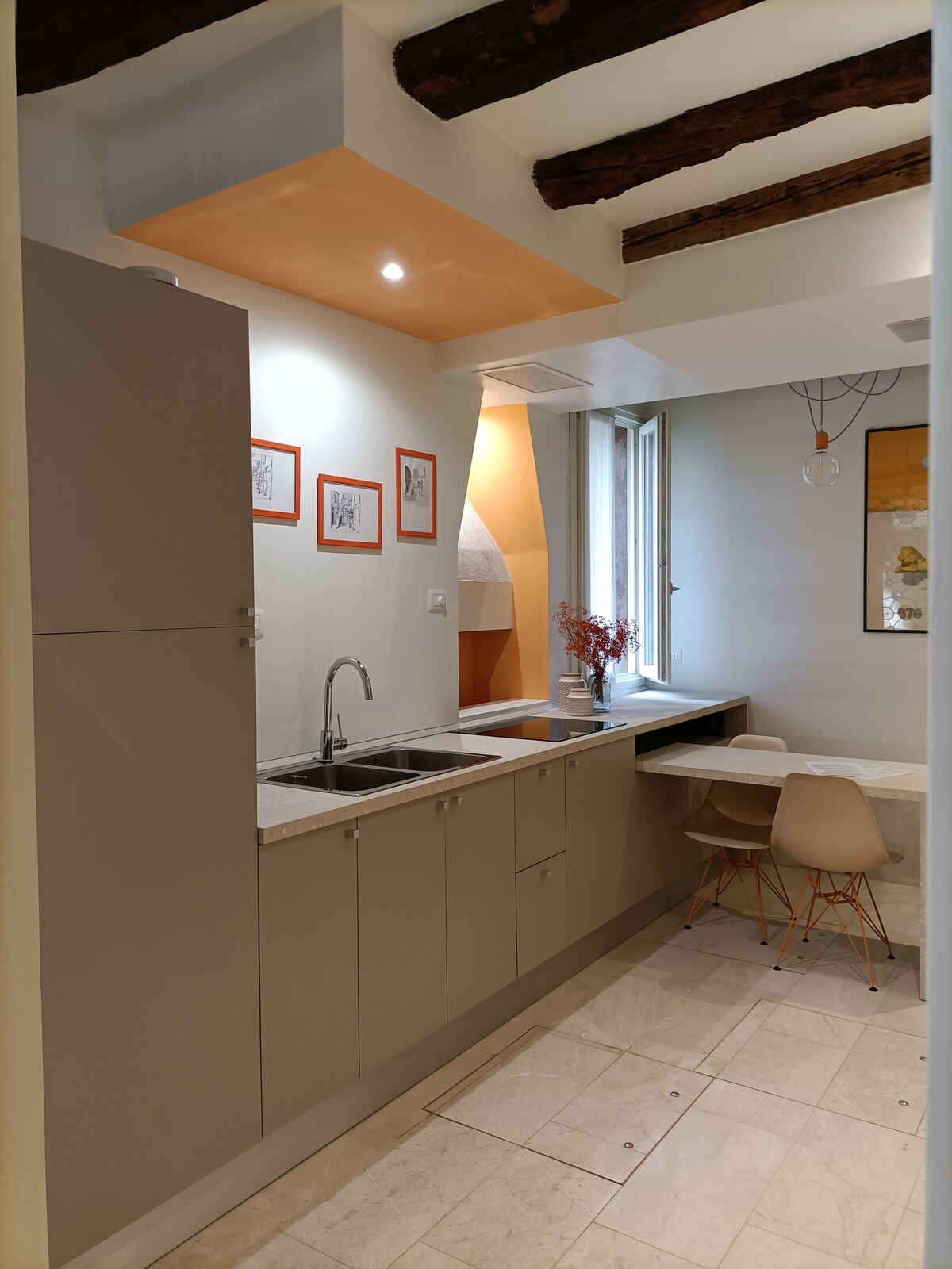 Svijetli stan je savršena kombinacija modernog stila i tradicije: dok su svi komadi namještaja potpuno novi, bijeli mozaik, plafon s gredama i ukrasni detalji odražavaju tipične venecijanske interijere. Stan je opremljen sljedećim uslugama: - potpuno opremljena kuhinja s indukcionim kuhanjem i kombinovanom rernom; - klima uređaj u trpezariji/kuhinji i spavaćoj sobi; - čiste peškire i posteljinu; - brzi Wi-Fi (i ethernet konekcija); - Cinema TV sa Sky dekoderom (s pretplatom na međunarodne kanale), muzički zvučni sistem. Most Rialto je udaljen samo sedam minuta ili se uputite malo dalje na trg Piazza San Marco za oko 15 minuta. Izgubiti se u slikovitim uličicama dio je ljepote istraživanja Venecije. Poštujte ljepotu! Kao što vidite, sve je dizajnirano i napravljeno da savršeno odgovara ovom komadu raja. Ulažemo mnogo vremena i svu našu strast da stvorimo ovu malu oazu: ponašajte se kao da ste u svom smještaju. Imajte na umu da, nakon što vaš boravak bude potvrđen, trebat će mi fotografija vašeg ID-a. Hvala unaprijed na saradnji.