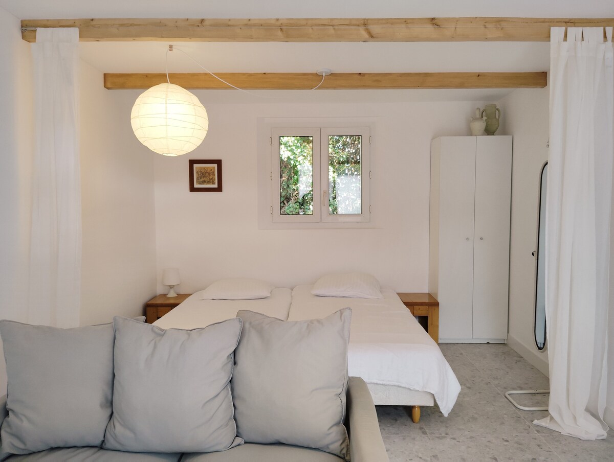 U ekološkoj kući koja miriše na drvo, mali nezavisni dupleks u blizini obalnih staza. Savršeno za parove, praznike ili rad na daljinu. Bono je šarmantna mala mirna luka, između Vannesa i Auraya, sa svojim ribarskim brodom i starom lukom, grobljem za brodove i u blizini plaža Quiberon i Carnac. U selu ćete imati različite restorane, prodavnice, radionice umjetnika i dvije pijace sedmično.