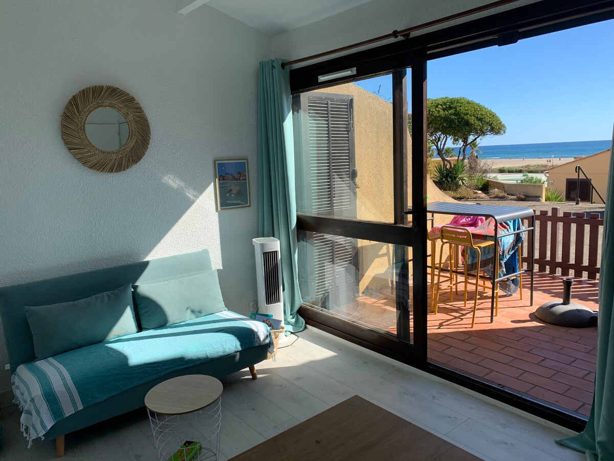 T2 climatisé, RDC vue mer, accès plage & piscine