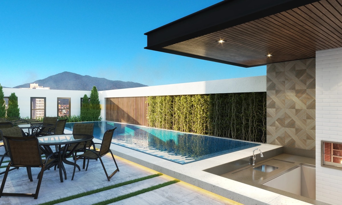 Jednosoban stan koji se nalazi u jednom od najkompletnijih kondominija u Bombinhasu, udaljen 400 metara od plaže Bombas, nekoliko bazena, od kojih su 2 grijana, teretana, igralište, dječji prostor, igraonica, soba za film, sauna, balkon s roštiljem i prekrasnim pogledom, rotirajuće parking mjesto, Wi-Fi, praonica rublja s mašinom za pranje veša unutar stana.