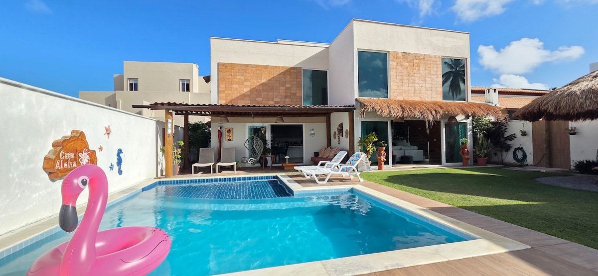 Posebno i ugodno mjesto za zabavu vaše porodice i prijatelja na rajskoj plaži Tatuamunha, koja je udaljena samo 130 metara i 150 metara od rijeke koja ima isto ime. Postoji 280m² izgrađene površine s 03 spavaće sobe(1 master), pametnim i podijeljenim TV-om, bračnim madracima s novim oprugama u vrećama, kompletnom kuhinjom. I 170m² vanjskog prostora, bazena, kompletne gurmanske kuhinje, pivare, roštilja i ležaljki za sunčanje. Također nudimo, iz ljubaznosti, dnevnog radnika da opere suđe i očisti kuću.