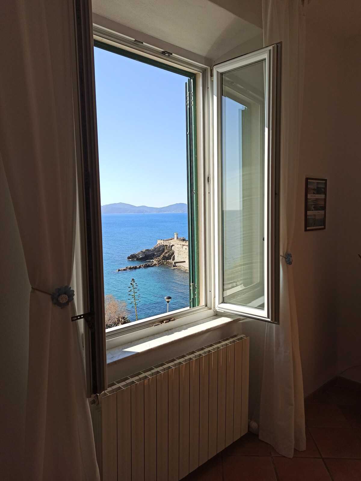 Naš stan se nalazi na šetalištu Porto Azzurro: veliki prozor dnevne sobe je slika koja se neprekidno mijenja u zavisnosti od sati dana, vjetra, sezone. Od zime do ljeta nikada se nećete umoriti od sjedenja na balkonu i diviti se moru: brodovi koji ulaze u luku ili odlaze na putovanje, ljudi, turisti, ribari... nakon nekoliko dana i vi ćete ih naučiti prepoznati i praviti vam društvo na odmoru