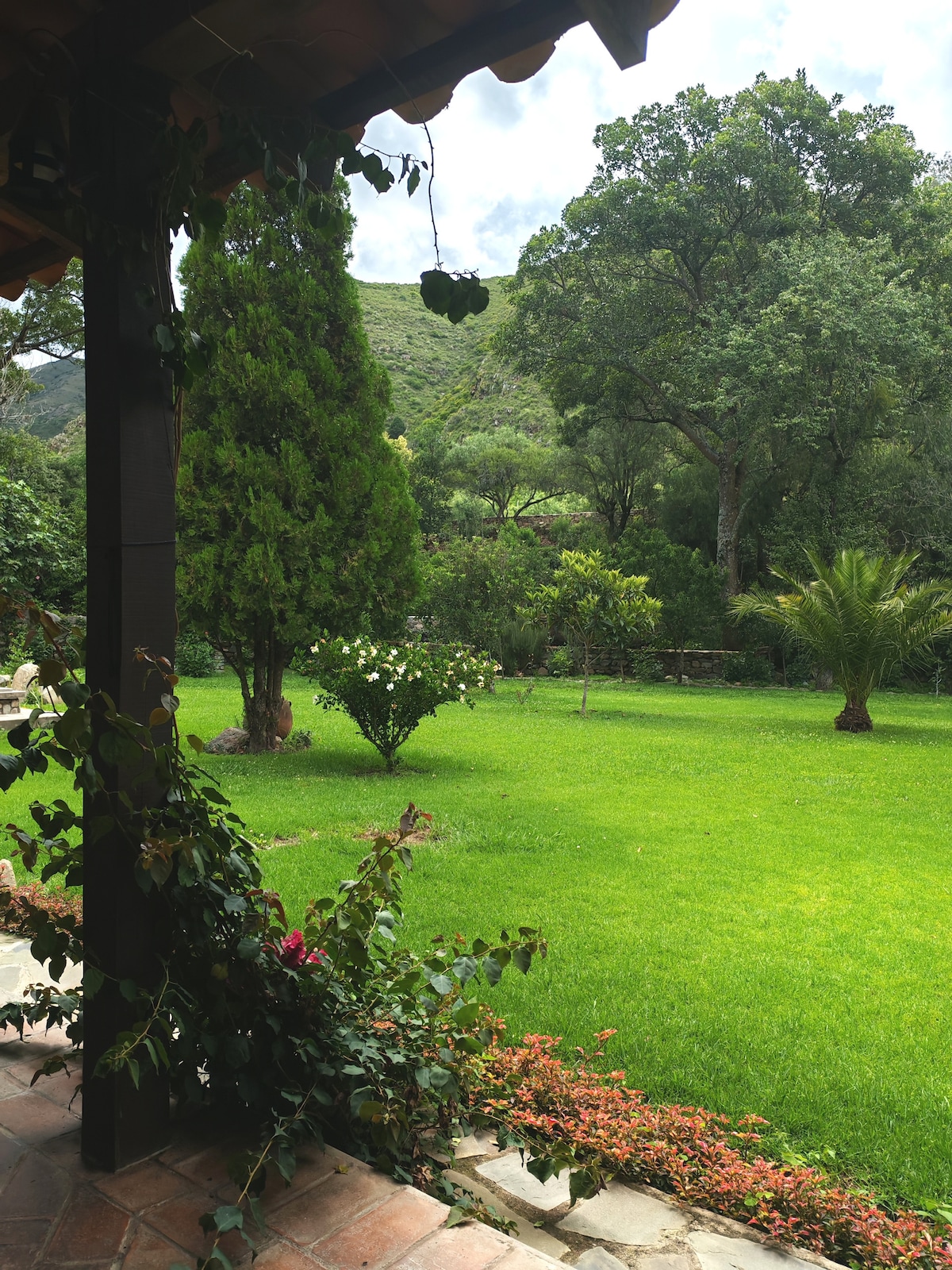 Montañas-quebradas/cabaña acogedora-flora/fauna