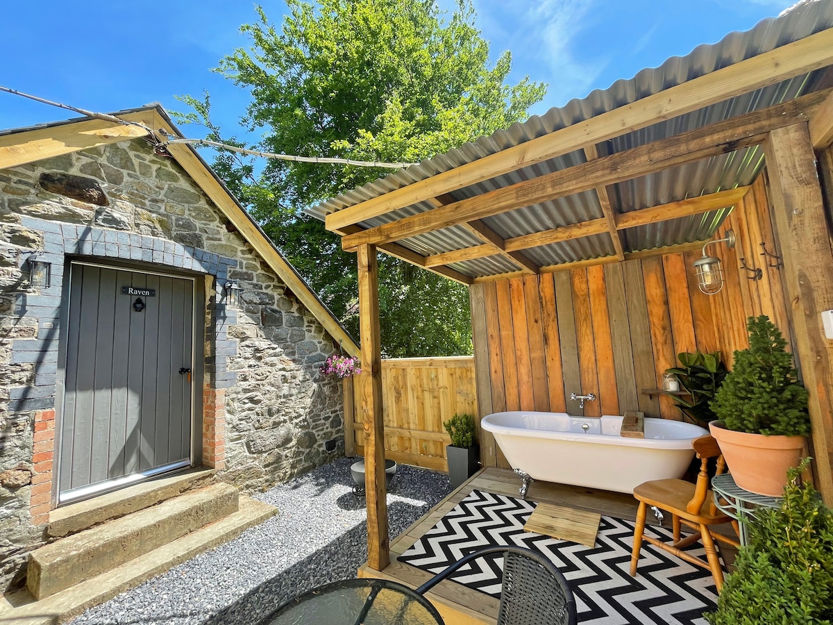 GAVRAN je pretvorena velška kamena staja u smještaj u stilu sijena. To je tradicionalna seoska kućica sa savremenim detaljima koja bi odgovarala paru koji traži odmor u prekrasnoj šumi koja radi i opusti se u ovom mirnom, elegantnom prostoru. Imamo 10 seoskih kućica ovdje u šumskim seoskim kućicama Trallwm, smještenim u našoj privatnoj šumi od 400 hektara. Imamo 4 staze za brdski bicikl i šetnju. Wi-Fi je osiguran