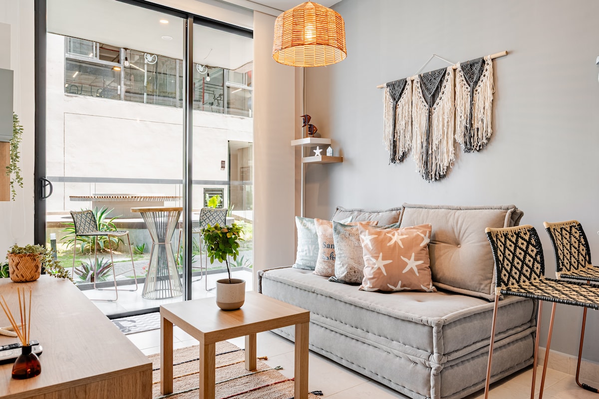 Bienvenidos a este encantador apartamento ubicado entre los exclusivos sectores de Bello Horizonte y la reserva natural de Pozos Colorados, una de las zonas más tranquilas y seguras de Santa Marta. Ideal para parejas, viajeros de negocios o familias, pues el espacio ha sido diseñado para brindar comodidad y tranquilidad, enfocado en ofrecer una atmósfera cálida y moderna.