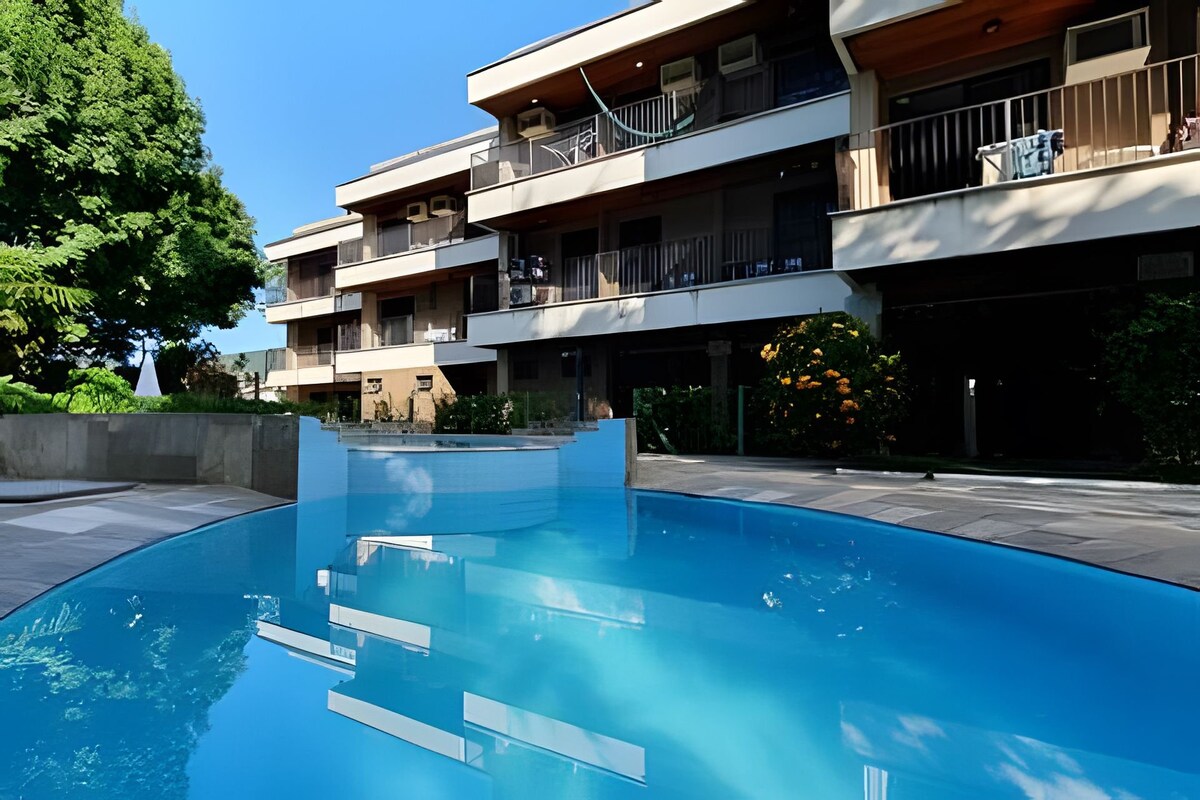 ATENÇÃO SPA (jacuzzis, saunas, piscina aquecida coberta) FECHADOS p/ manutenção Apartamento completo no Cond. Reserva DNA Varanda c/ quintal e churrasqueira privados. Suíte e sala espaçosa c/ lavabo e a/c Roupa de cama/banho incluso, cozinha completa com utensílios, eletrodomésticos e filtro de agua. Máq de lavar e secar Smart tv e wi-fi. O apto em si não tem vista para o mar, as vistas são das áreas comuns e todos tem acesso.(ver fotos) Pets educados e de pequeno porte são bem vindos