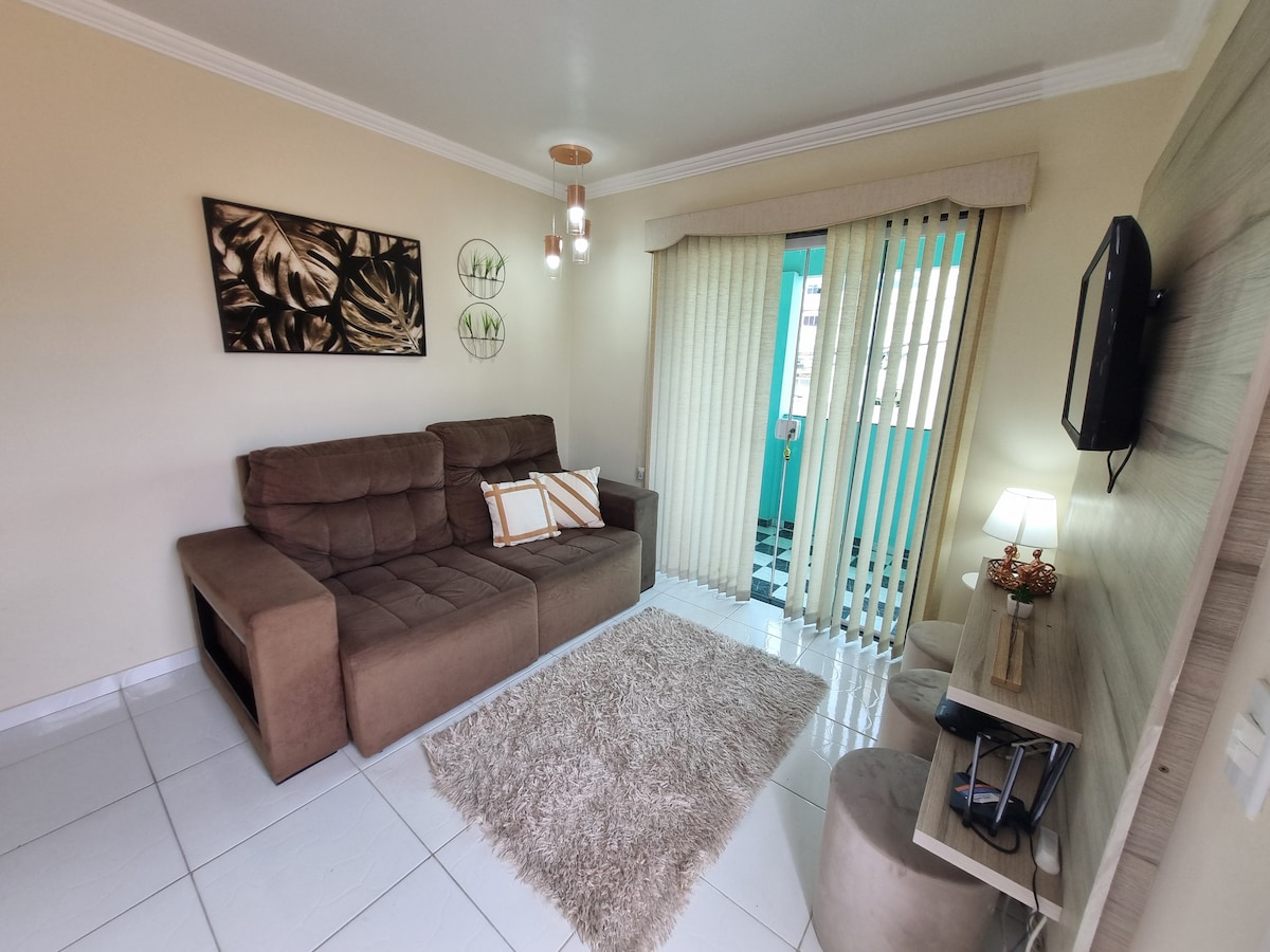 Apê zajedno s udobnim dizajnom u jednom od najpoželjnijih kvartova u gradu Saquarema - RJ. Ovdje se nalazite pored glavnih mjesta u gradu. Kao restorani, barovi, zalogajnice, prodavnice, apoteke, tržnica i nalazi se pored Gradske vijećnice, 01 blok od lagune i plaže. Biće mi zadovoljstvo da vam poželim dobrodošlicu! - Wi-Fi 350 mb - Smart TV 32" - Kuhinja opremljena 4-bitnom pločom za kuhanje, mikrovalnom pećnicom, priborom za jelo, frižiderom, blenderom, aparatom za sendviče, aparatom za kafu, između ostalog.