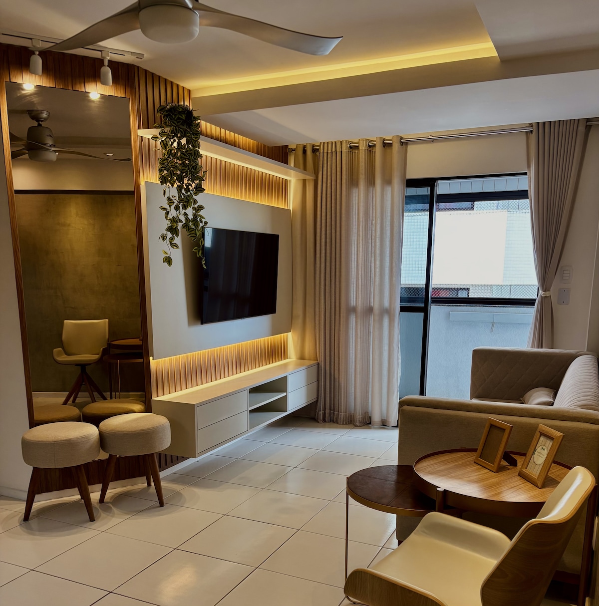 Stan s 3 spavaće sobe, 2 klimatizovana apartmana i 1 spavaćom sobom s radnim stolom. Sve je prozračno, savršeno za porodice. Ima Wi-Fi, opremljenu kuhinju i prostor u garaži. Odlična lokacija, 550 metara od obale Praia do Atalaia, ima tržnicu s blagajnikom koji radi 24 sata dnevno preko ulice i udaljena je 11 minuta vožnje od aerodroma. Zgrada ima lift i kondominij s recepcionerom koji radi 24 sata dnevno, teretanu, sobu za zabave, bazen i prostor za roštilj.