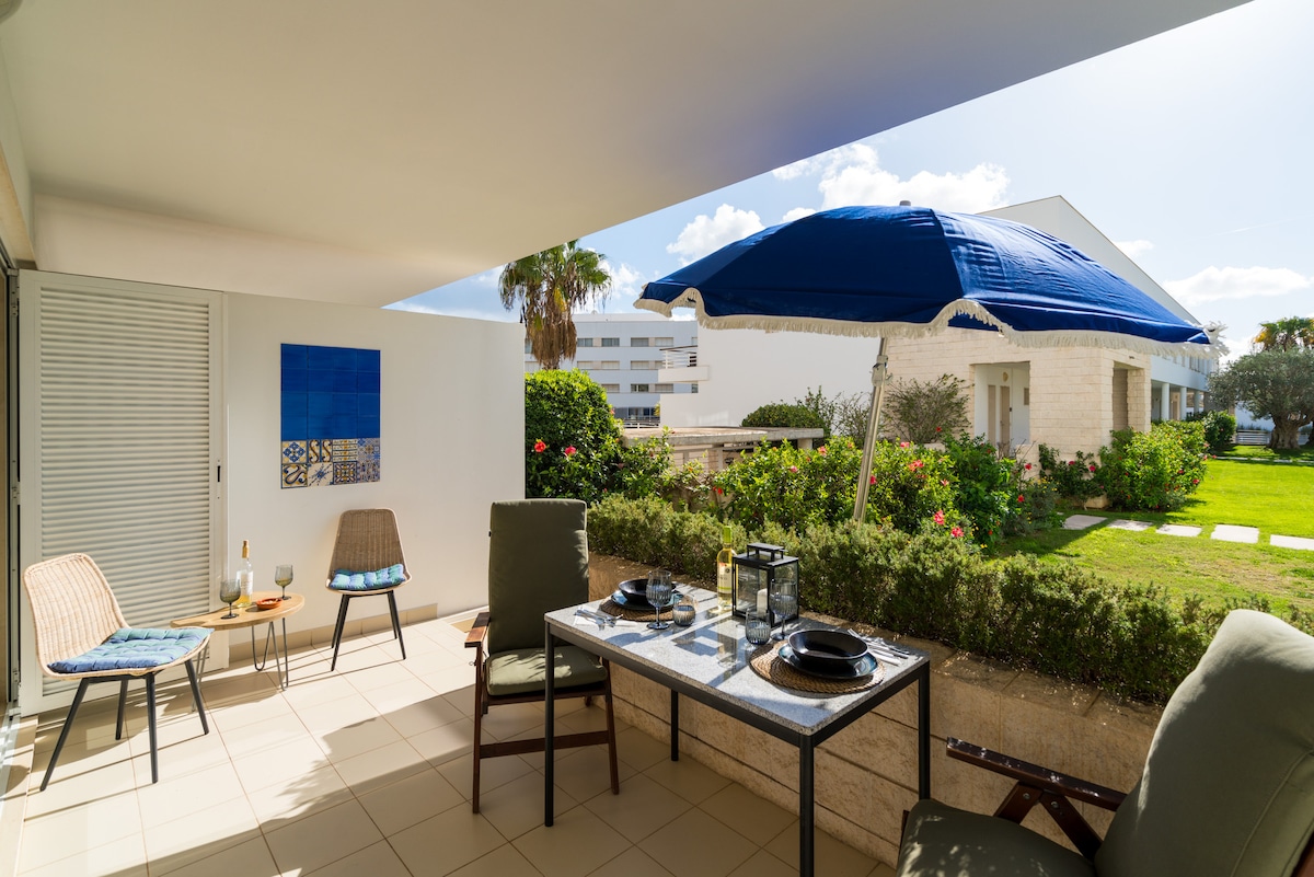 Naš stan se nalazi na Iberlagosu - kompleksu smještenom na vrhu litica koje uokviruju plažu Dona Ana i 8 minuta hoda od centra grada. Stan je prizemlje s dvije spavaće sobe, s lijepim trijemom s djelimičnim pogledom na more i direktnim pristupom kompleksnim vrtovima. Naši gosti imaju puni pristup kompleksnom bazenu koji je uključen u njihov boravak. Menadžer bazena uz naknadu iznajmljuje ležaljke i roletne u prostoru bazena.