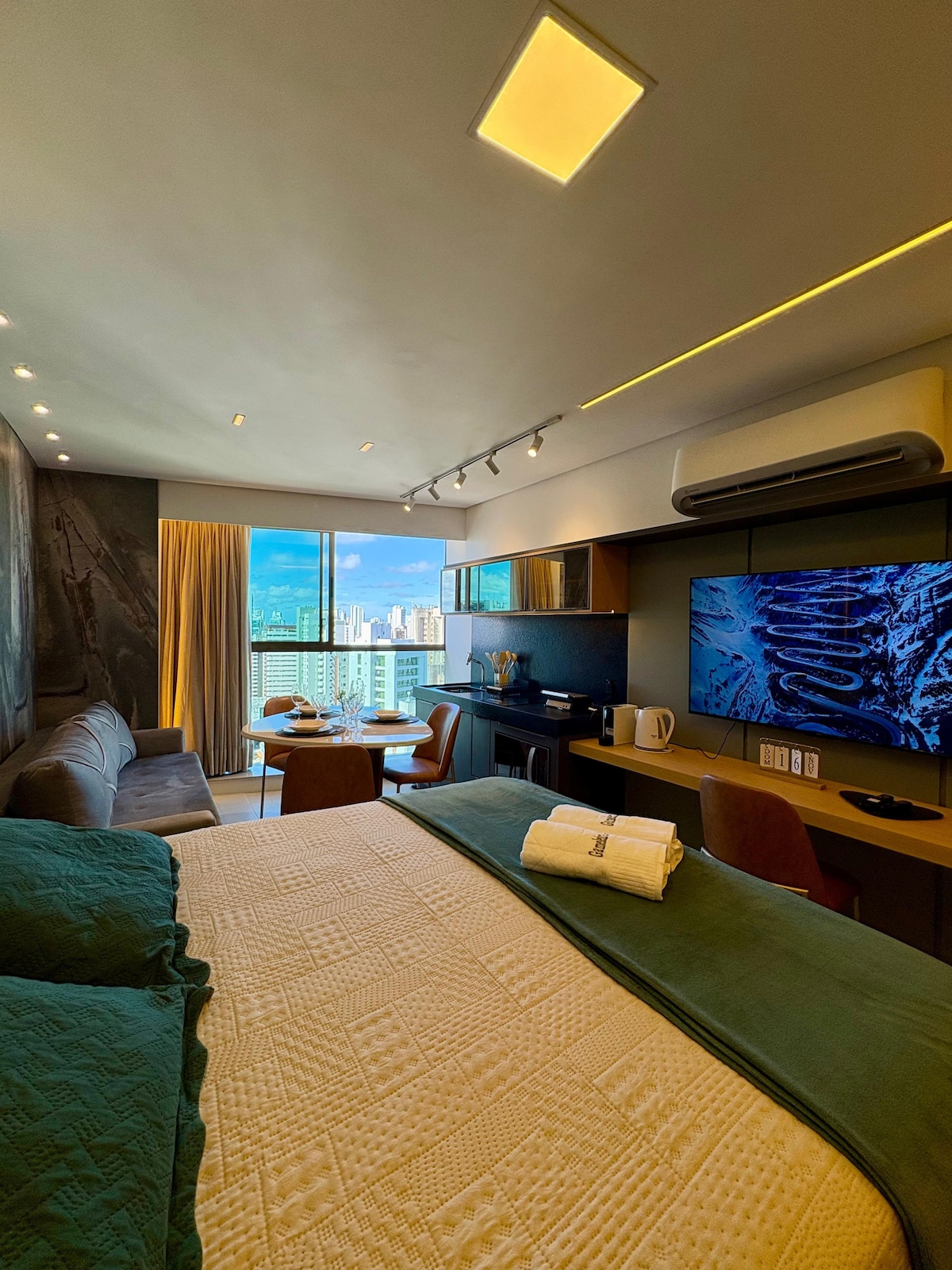 Ovaj jedinstveni smještaj ima svoj stil. Savršeno za one koji idu na posao ili uživaju u nekoliko dana u Recifeu. Odlična lokacija, u blizini plaže, glavnih trgovačkih centara, restorana, pekara, kafe itd. Naš stan ima udoban bračni krevet i pomoćni krevet. Vrhunska posteljina. TV 50’. Internet. Dobro opremljena kuhinja. Udoban stol za obroke ili posao. Zgrada sa parkingom, vešerom, coworkingom, gurmanskim prostorom, bazenom, hidromasažnom kadom, teretanom.