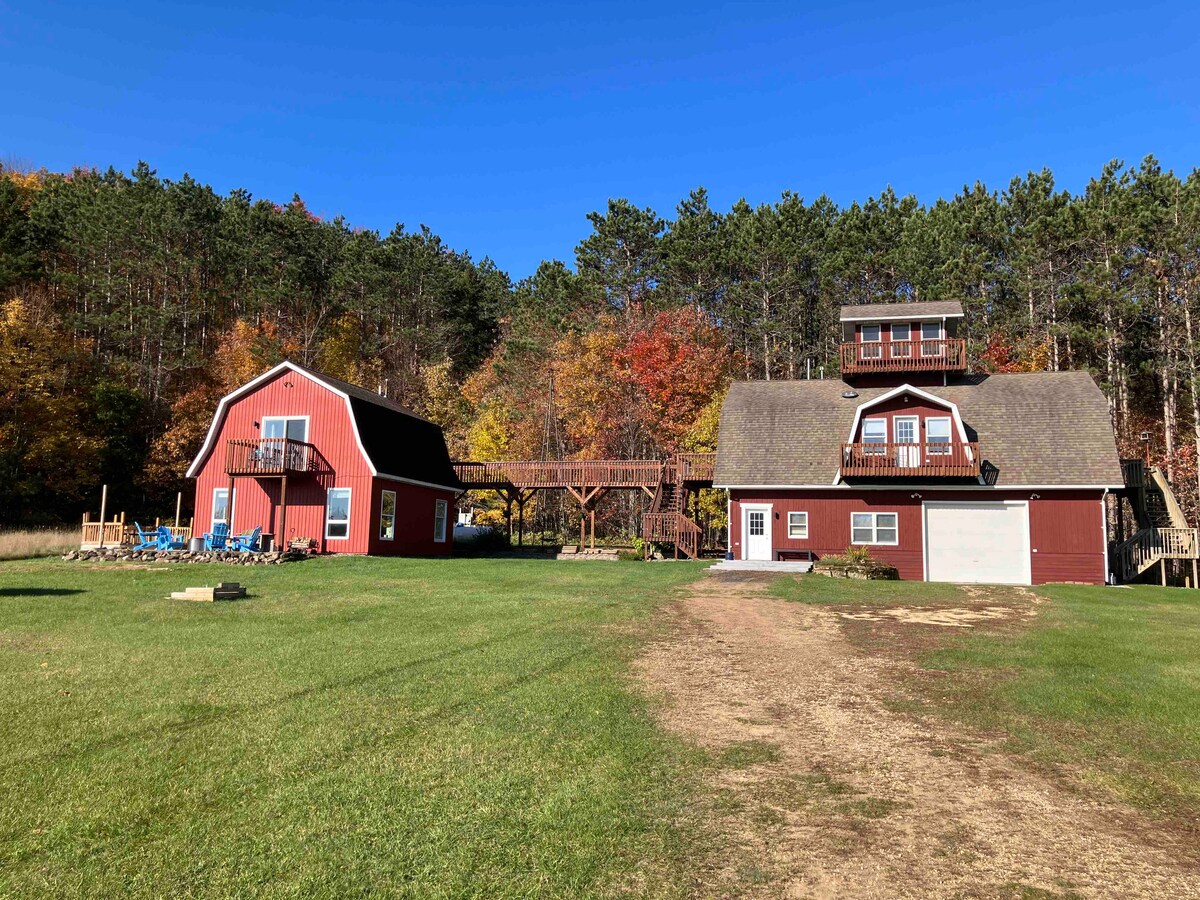 Smještena visoko na obalama rijeke Apple, ova brvnara s drvenim okvirom nudi spektakularan pogled na rijeku i divlje životinje. Uočili smo ćelave orlove, jelene, patke, guske, velike plave čaplje, zlatne orlove, lisice, dabrove, medvjede i divlje ćurke iz udobnosti brvnare. Na sat vremena od Twin Cityja, savršena brvnara za odmor za parove, prijatelje i porodice. Smješten na privatnoj površini u Ameryju (Wisconsin), bit ćete u blizini rijeka, jezera, pješačkih staza i svega što sjeverni Wisconsin nudi.