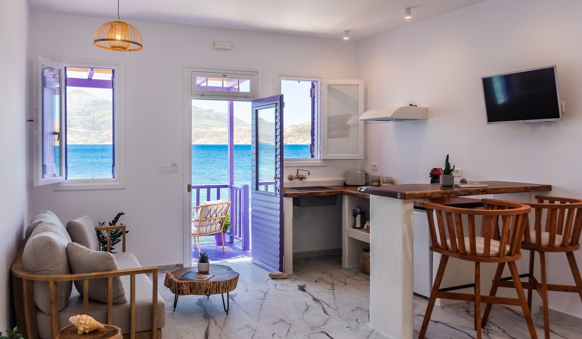 Think of a paradise. With the stunning sea view, Cycladic design and distinctive contemporary finishing touches. This is the place! Our accommodation is located in Mandrakia Village. The sea is just 50m away. It consists of one bedroom with one queen bed, fully equipped kitchen and a bathroom (with complimentary toiletries), smart TV, air conditioning and Wi-Fi. You can enjoy food & drinks on its terrace with spectacular view of the deep blue Aegean. The port of Adamas is 5 min away with a car.