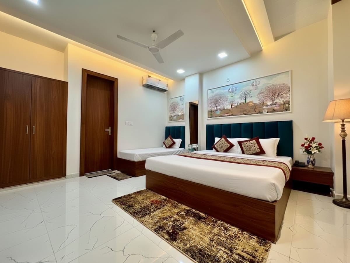 Welcome to SR Palace Vrindavan! Our Triple Standard Room is ideal for families or small groups, offering a clean and comfortable stay with AC, WiFi, TV, and attached bathroom. Located in a peaceful area near Prem Mandir and Banke Bihari Temple, guests enjoy easy access to major attractions along with a safe and budget-friendly stay.